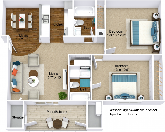 2 Beds, 2 Baths, 912 sq ftAvailable NowModel Gallery