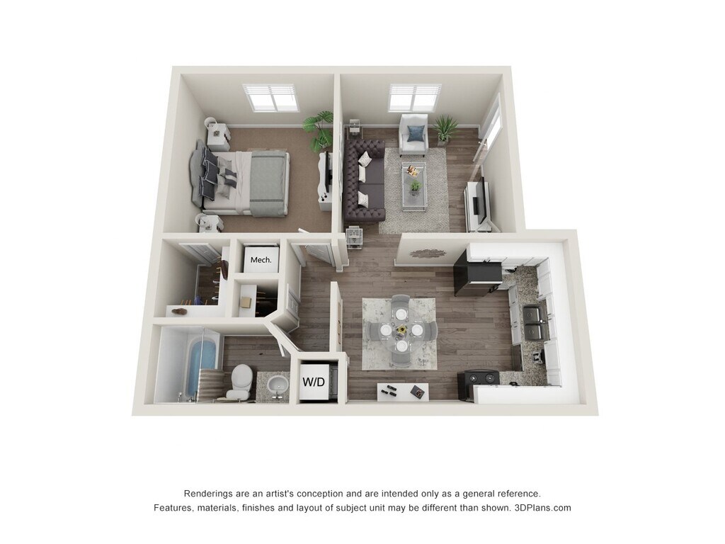1 Bed, 1 Bath, 627 sq ftAvailable NowModel Gallery
