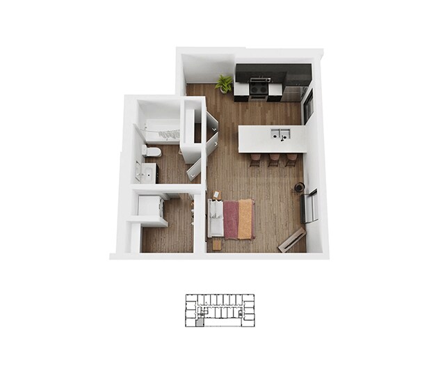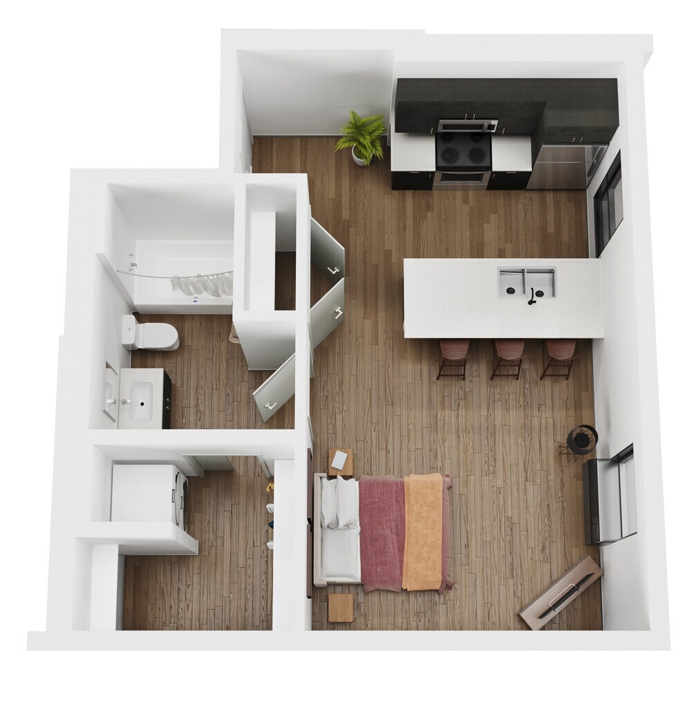 Roosevelt - Floorplan 2 Apartment Unit: 414Apartment Model: Roosevelt$1,295Studio, 1 Bath, 485 sq ftAvailable NowLyndale