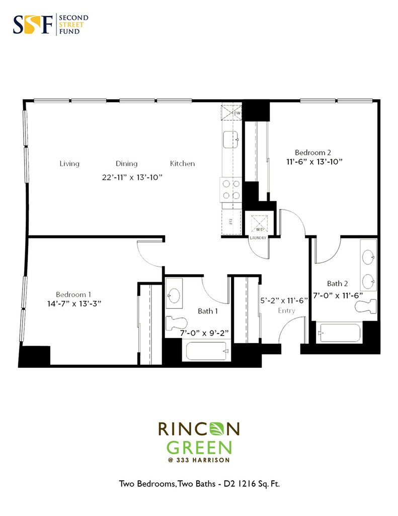 2 Beds, 2 Baths, 1216 sq ftLargest 2 BedroomThis is the largest 2 Bedroom at this PropertyModel Gallery