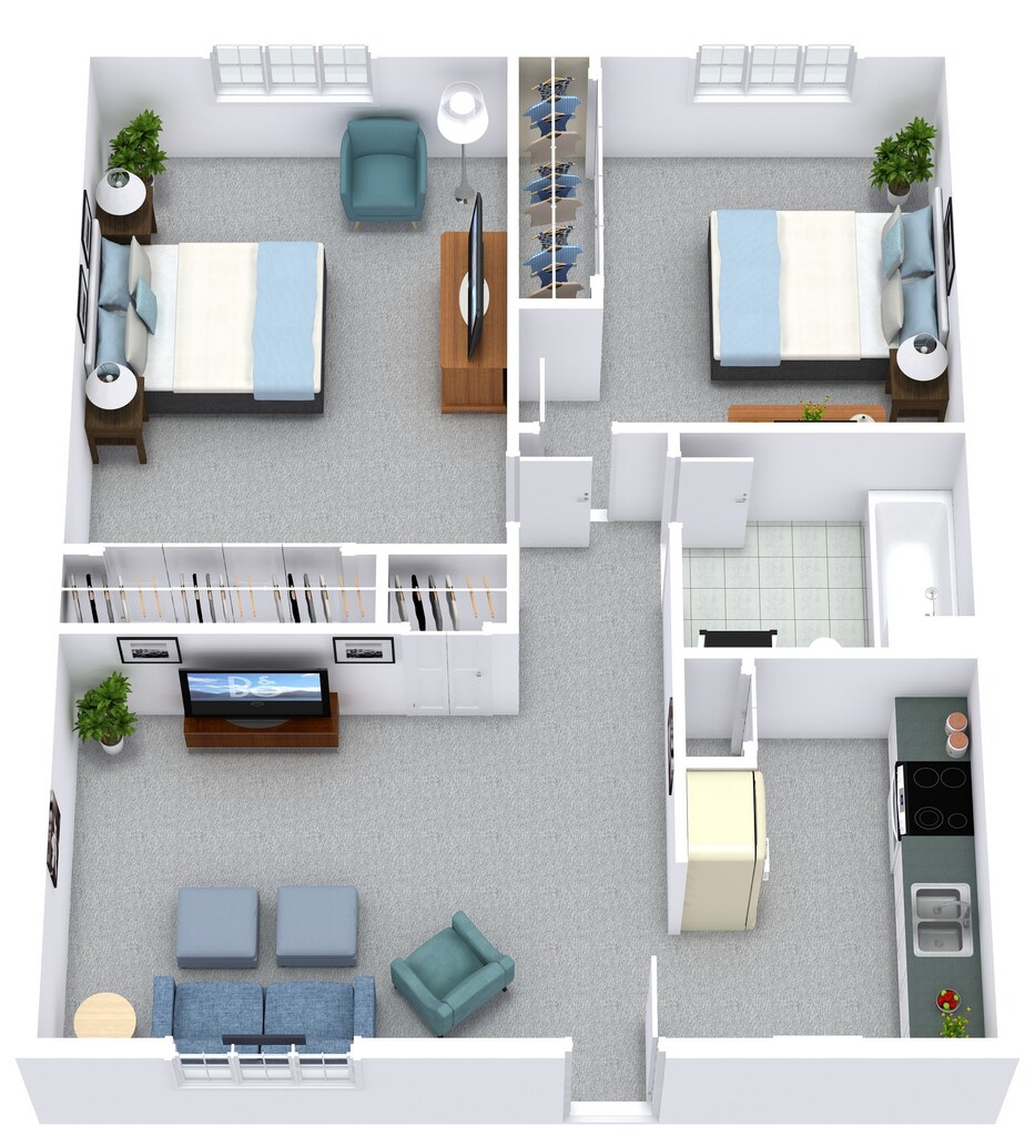 2 Beds, 1 Bath, 732 sq ftAvailable NowModel Gallery