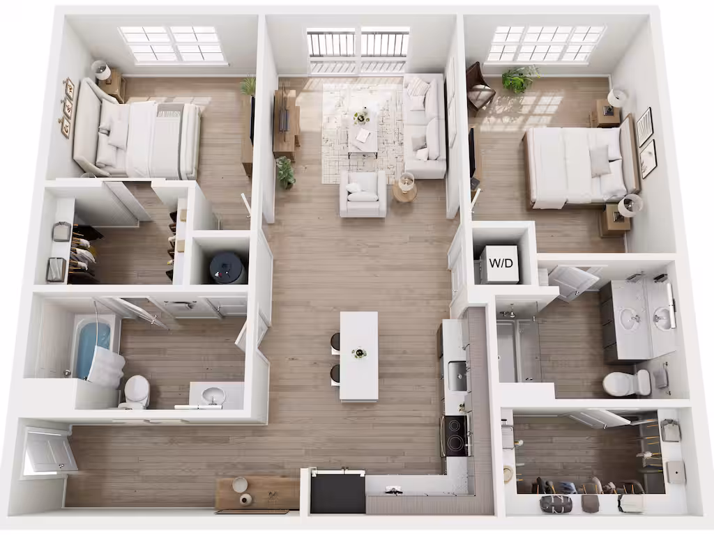 - Kitchen islands available in 2-bedroom residences