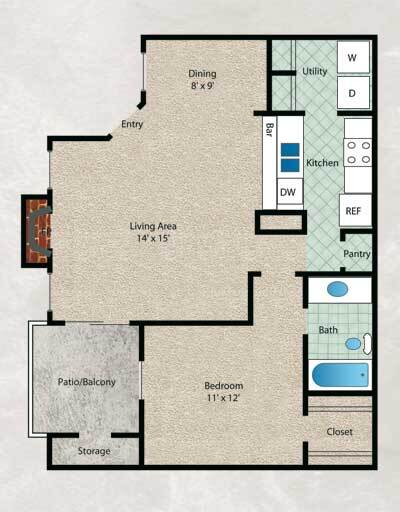 1 Bed, 1 Bath, 640 sq ftModel Gallery