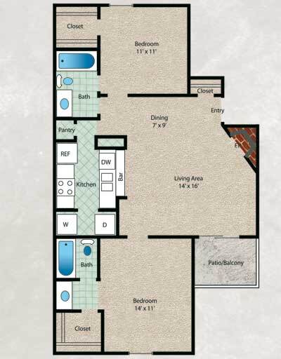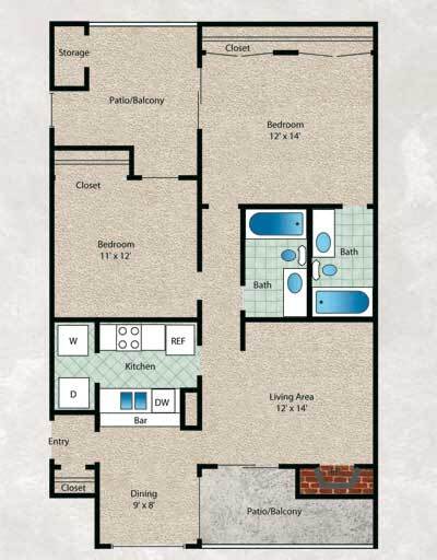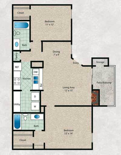 2 Beds, 2 Baths, 1000 sq ftAvailable NowLargest 2 BedroomThis is the largest 2 Bedroom at this PropertyModel Gallery