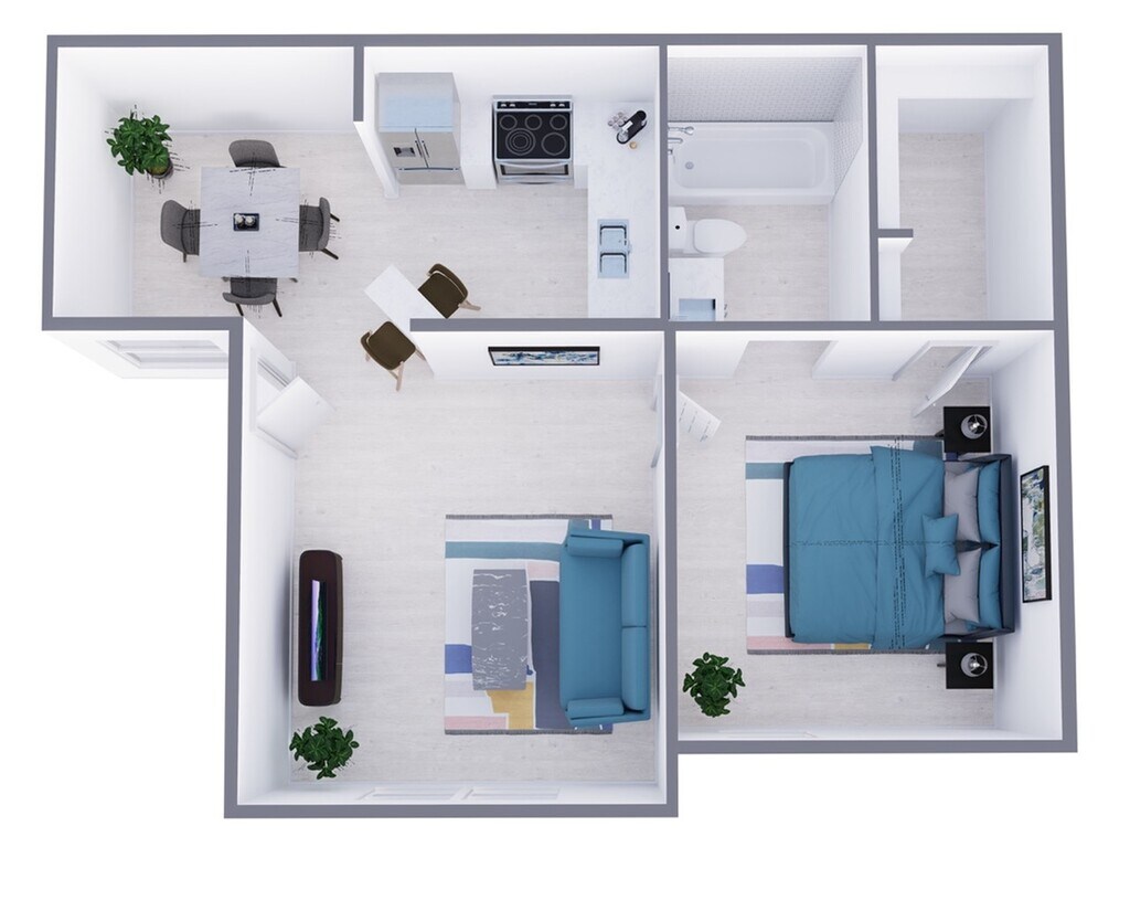 1 Bed, 1 Bath, 606 sq ftAvailable NowModel Gallery