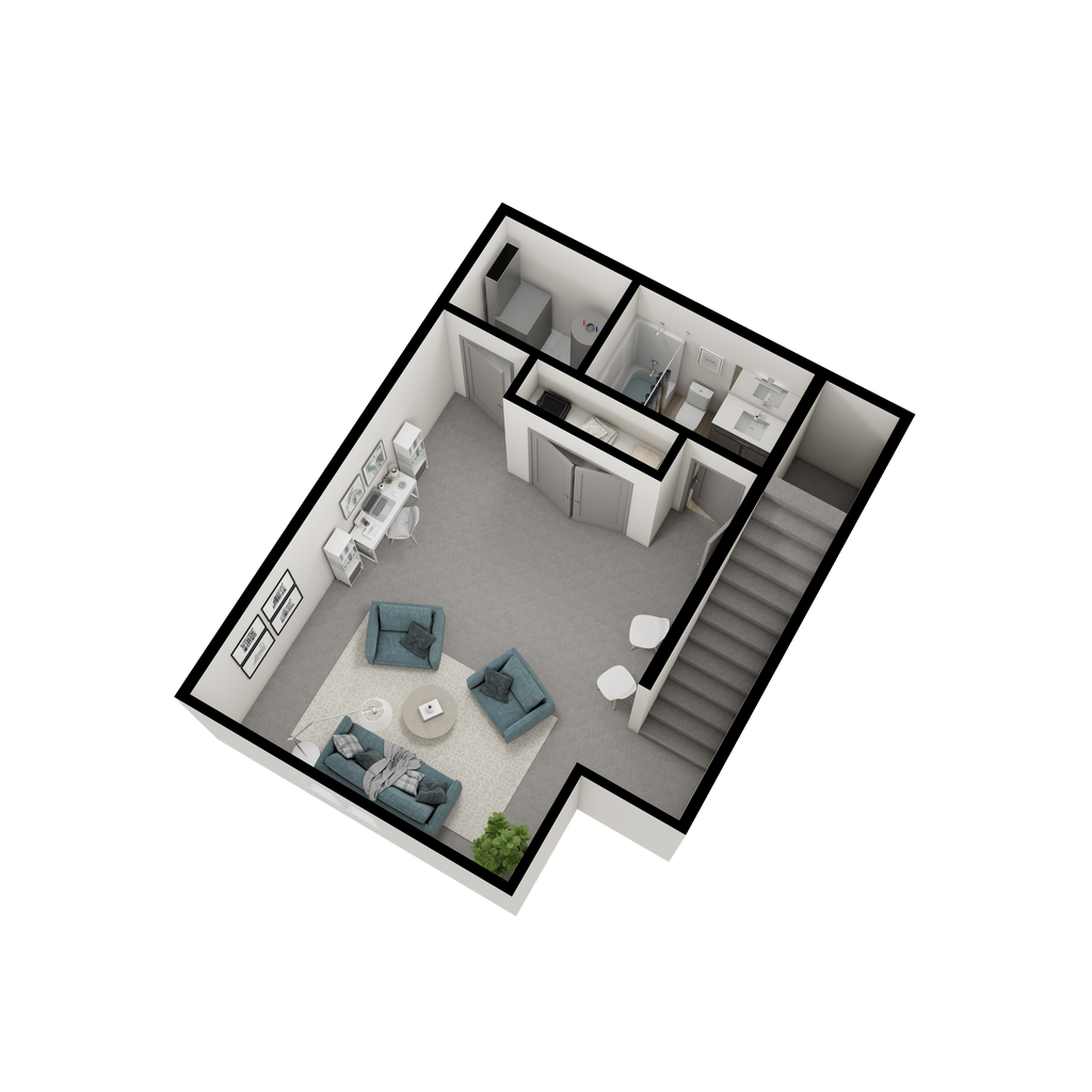 Big Sky 2-Bed w/ Unfinished Basement - Floorplan 2 Floor plans are artist's rendering. All dimensions are approximate. Actual product and specifications may vary in dimension or detail. Not all features are available in every rental home. Prices and availability are subject to change. Base rent is based on monthly frequency. Additional fees may apply, such as but not limited to package delivery, trash, water, amenities, etc. Deposits vary. Please see a representative for details.