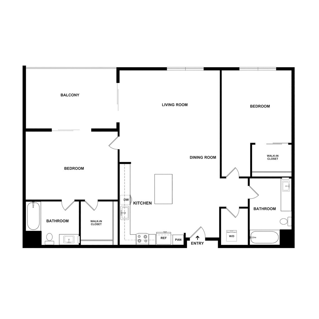 2 Bedroom, 2 Baths - Floorplan 1 ![]()