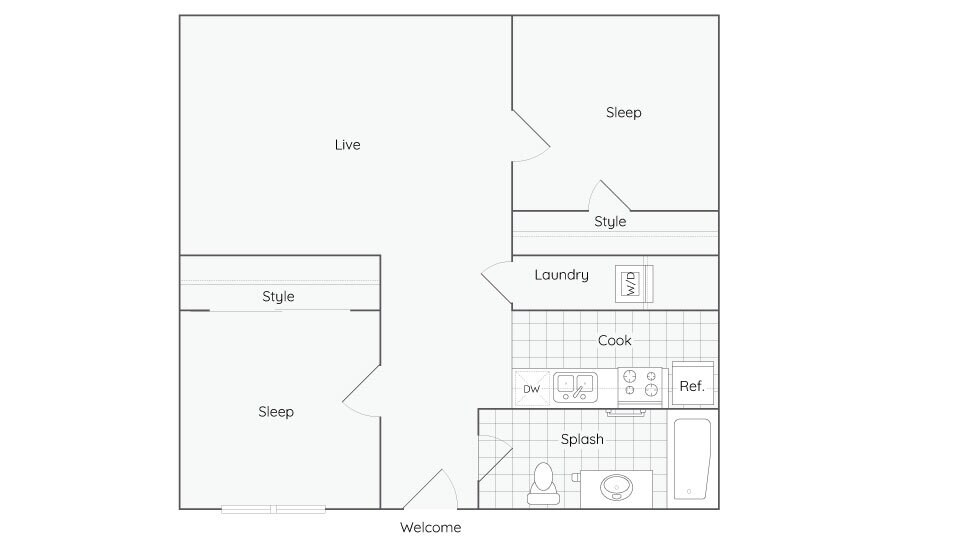 2 Beds, 1 Bath, 907 sq ftModel Gallery
