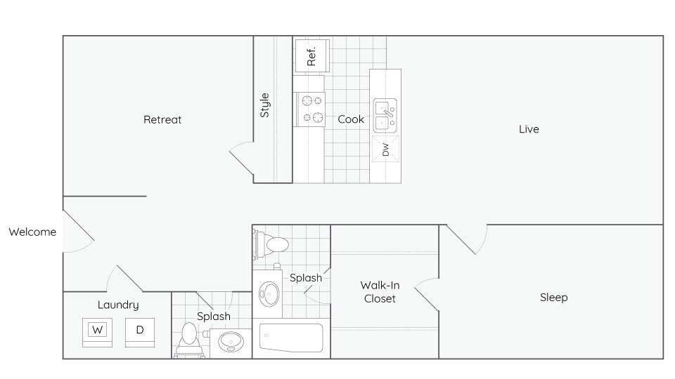 1 Bed, 1 Bath, 646-799 sq ftAvailable NowCheapest 1 BedroomThis is the cheapest 1 Bedroom at this PropertyModel Gallery