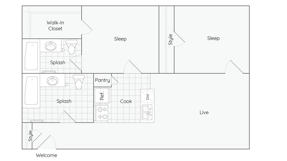 2 Beds, 2 Baths, 897-933 sq ftAvailable NowModel Gallery