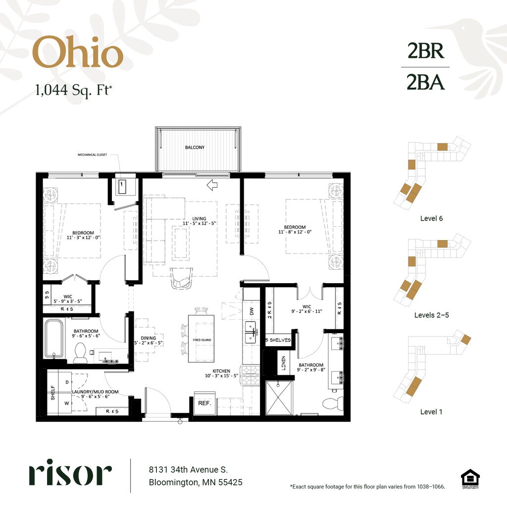 Risor of Bloomington 55+ offers 1 to 2 Bedroom apartments starting from $2,117 and having 743–1,066 sq ft. Here is the current pricing and availability: