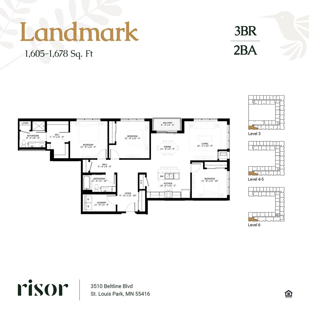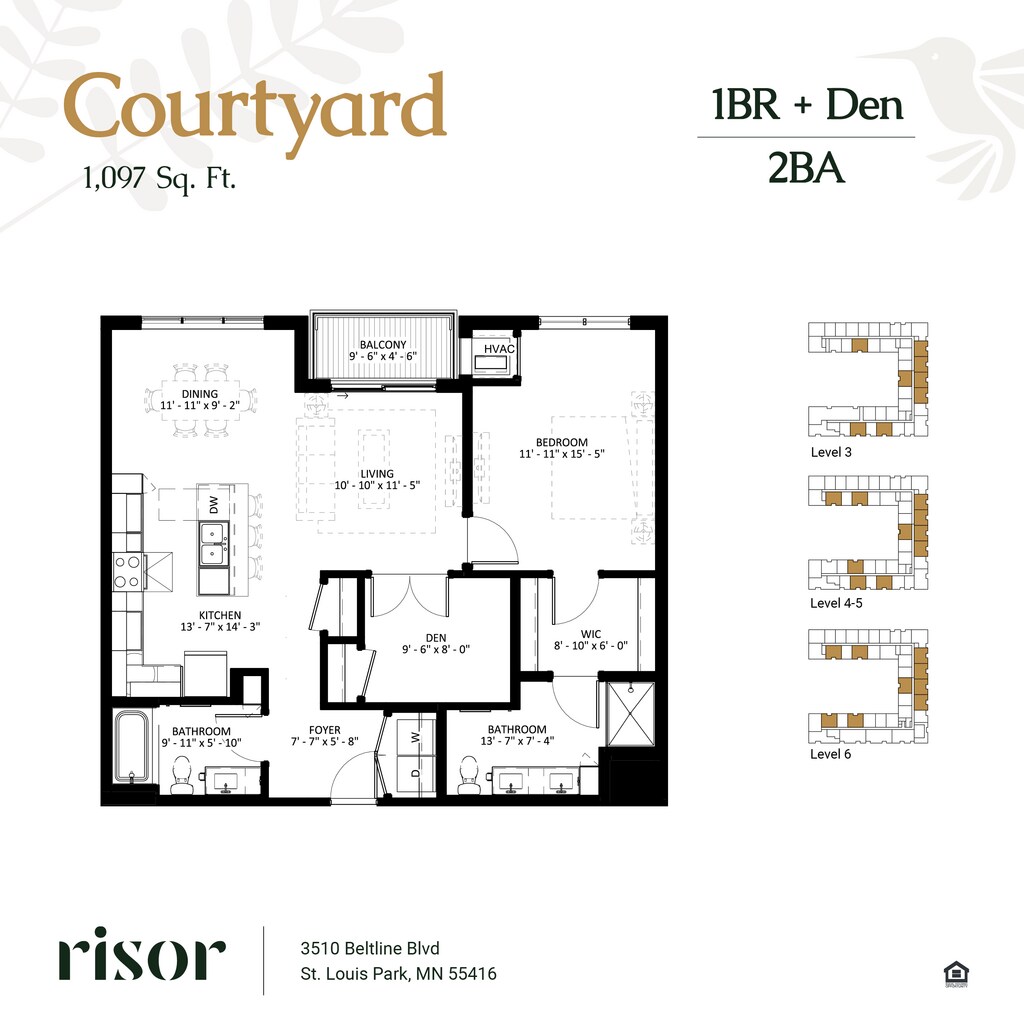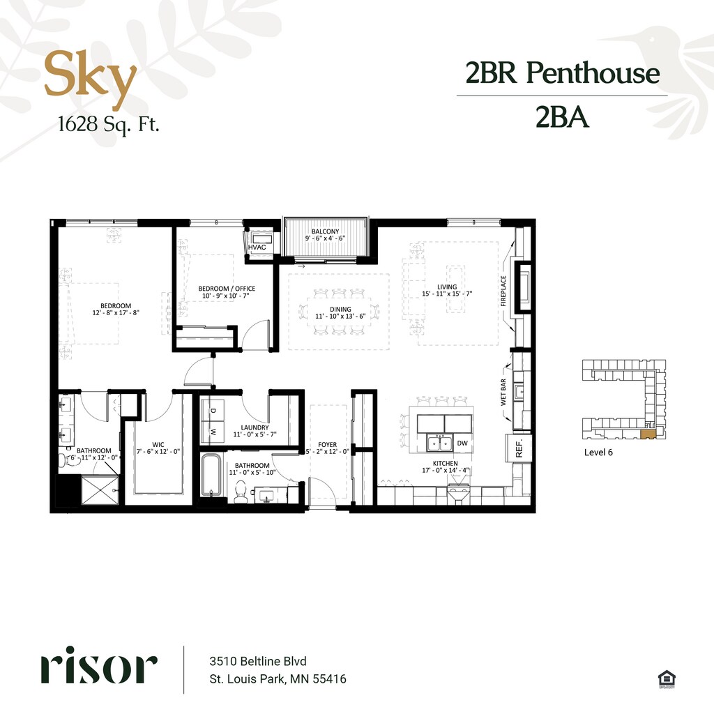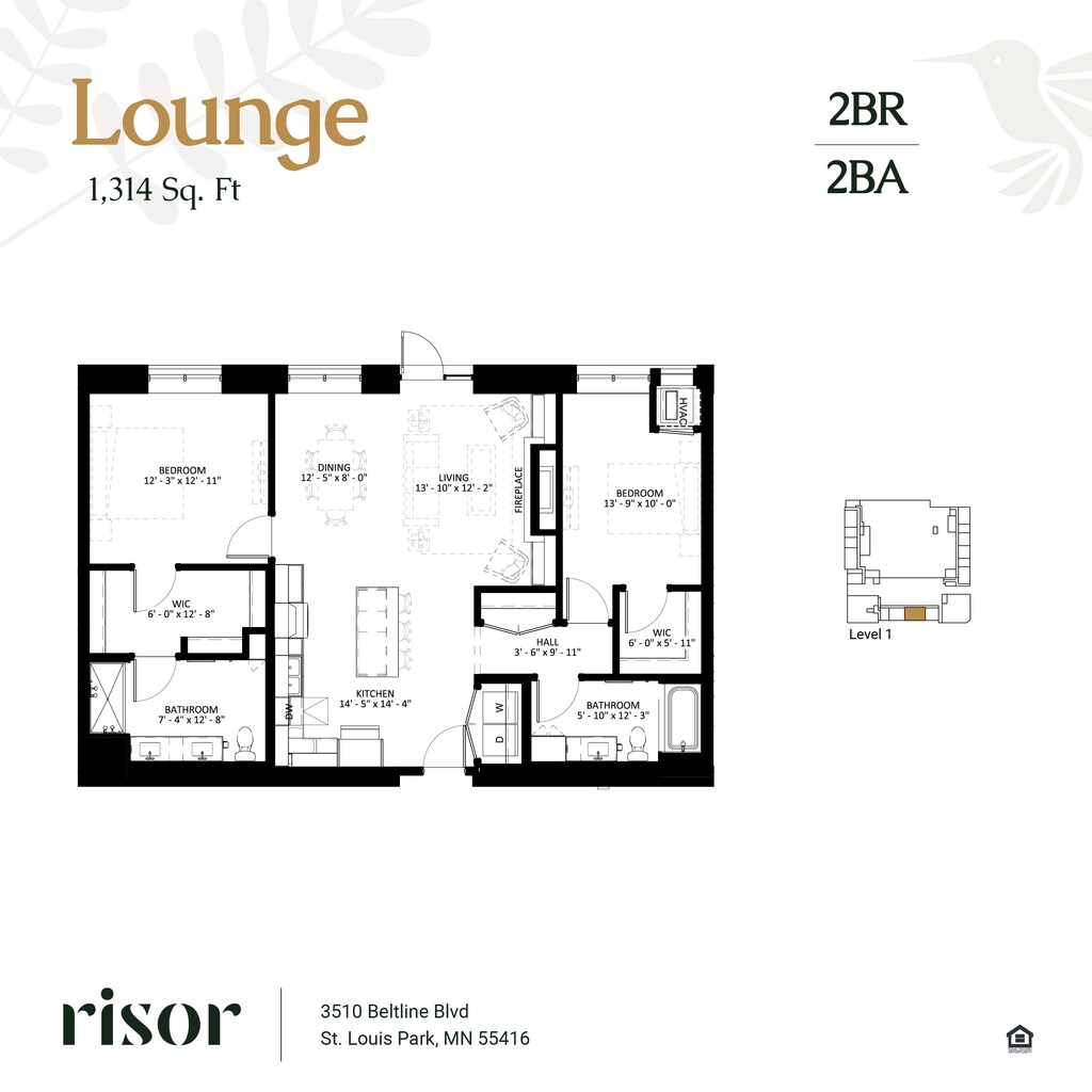Risor of St. Louis Park - Active Adult 55+ offers 1 to 3 Bedroom apartments starting from $1,967 and having 710–1,814 sq ft. Here is the current pricing and availability: