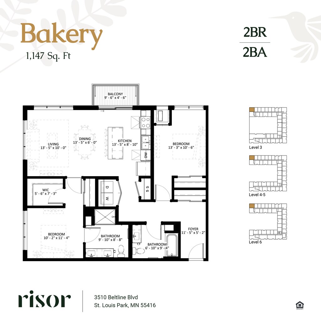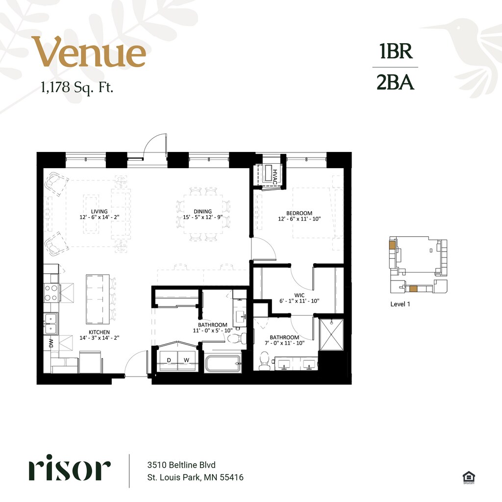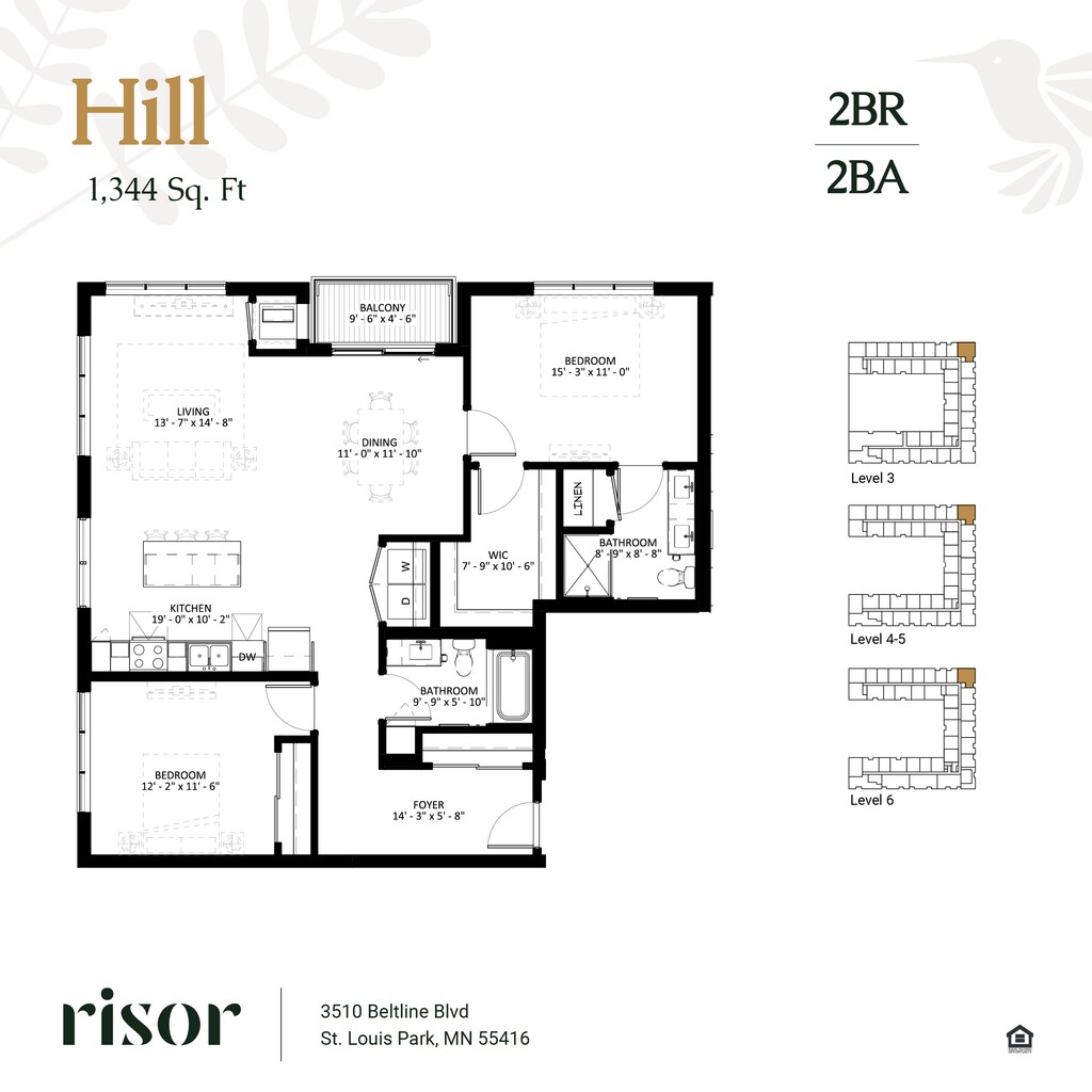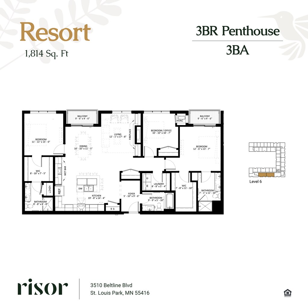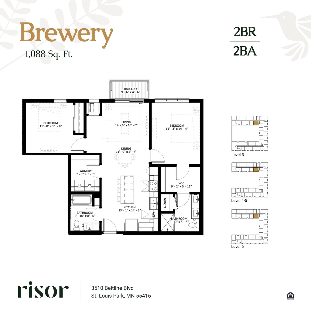 Risor of St. Louis Park - Active Adult 55+ offers 1 to 3 Bedroom apartments starting from $1,967 and having 710–1,814 sq ft. Here is the current pricing and availability: