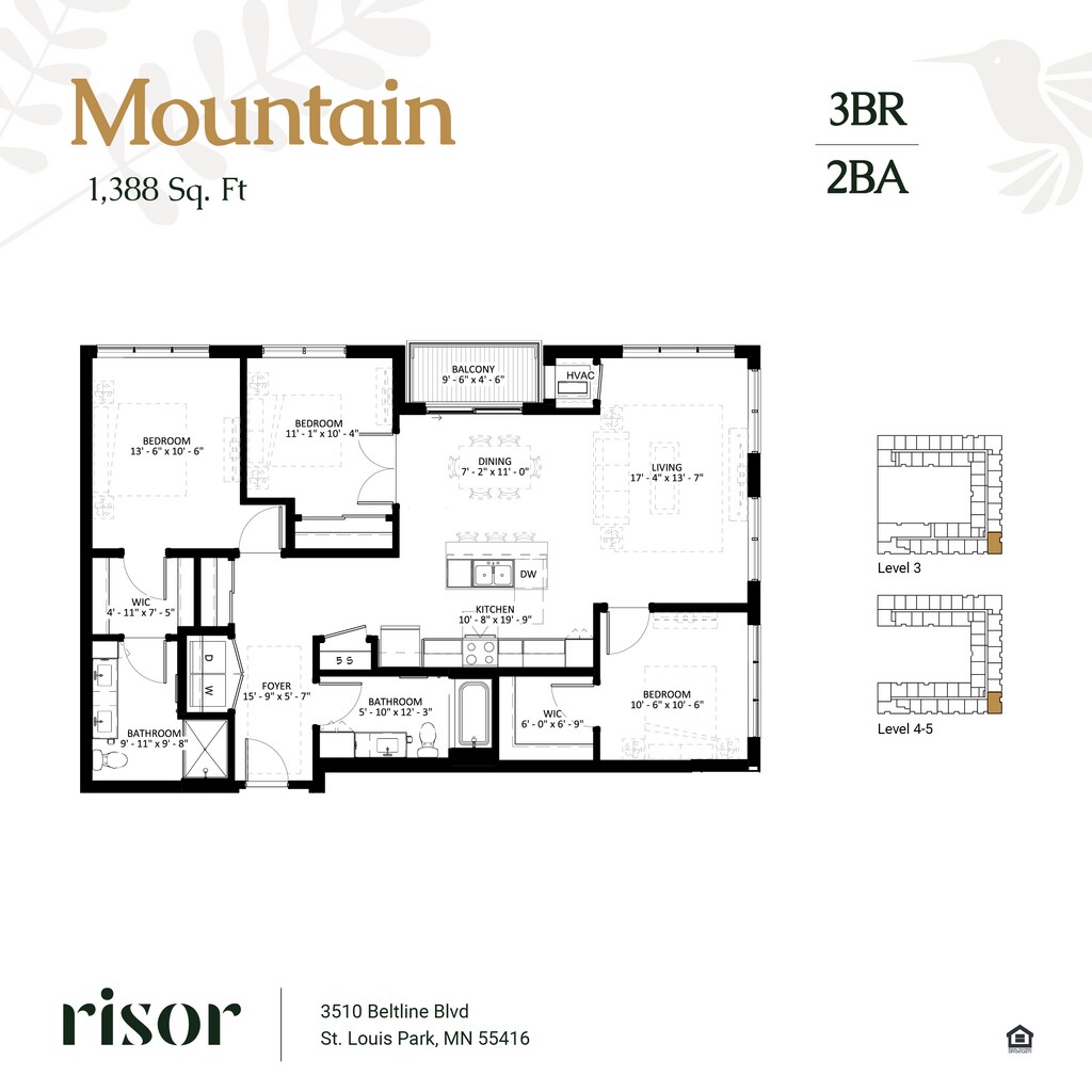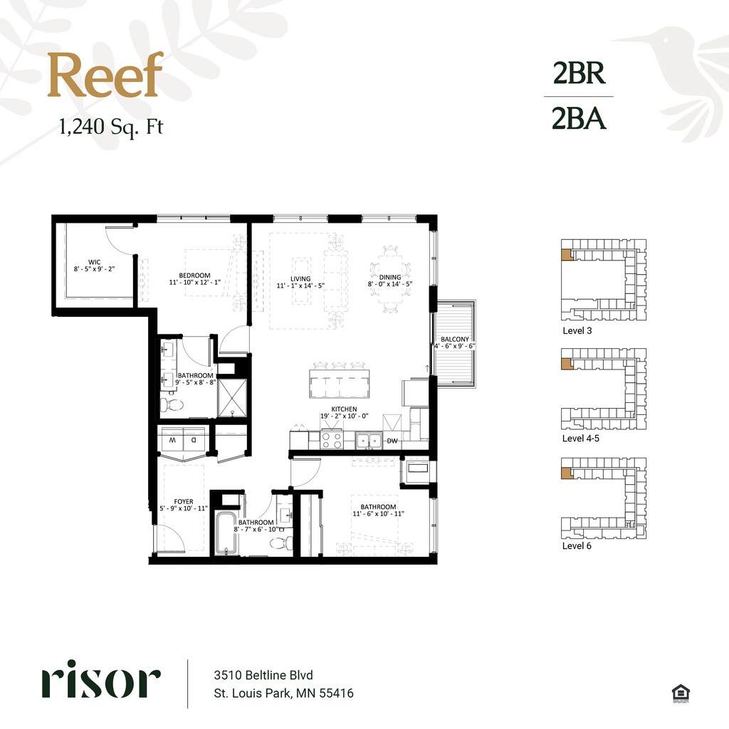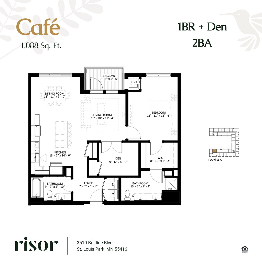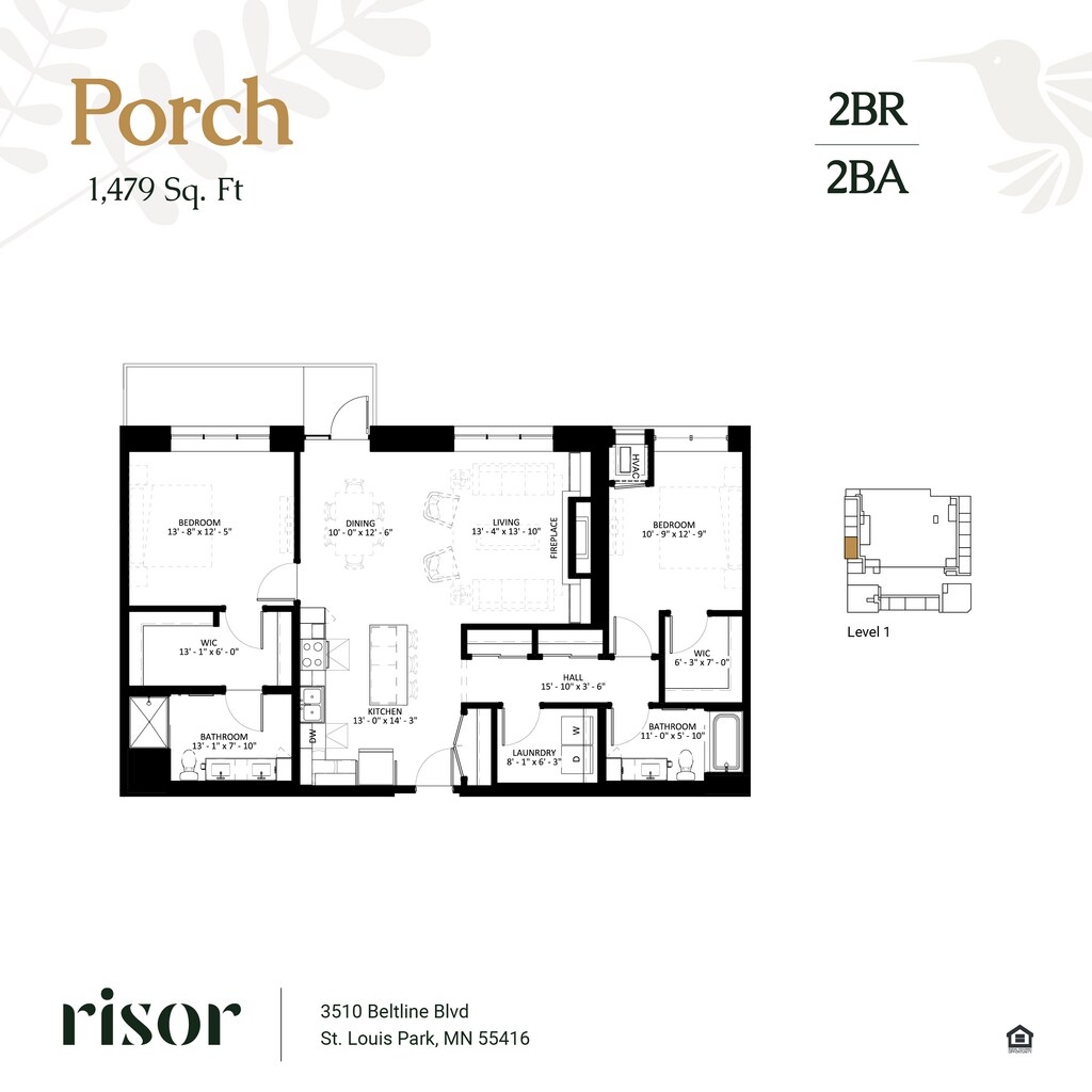 Risor of St. Louis Park - Active Adult 55+ offers 1 to 3 Bedroom apartments starting from $1,967 and having 710–1,814 sq ft. Here is the current pricing and availability: