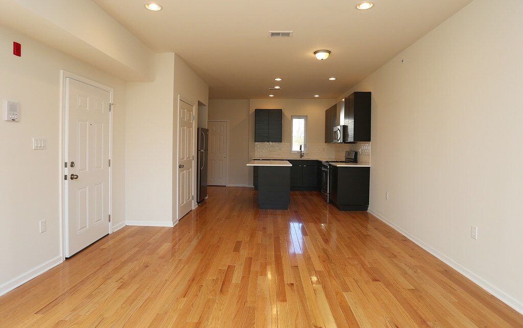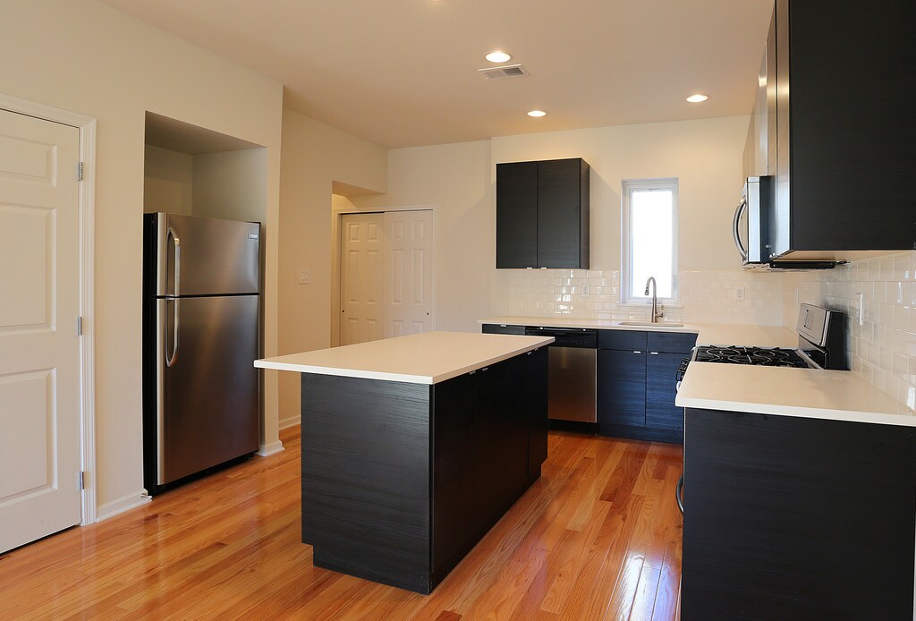 Upscale living in Germantown/East Falls. Quiet townhome community with lots of charachter, Just minutes away from Main Street in Manayunk, only 15 minutes from Center City Philadelphia. 1 block from Wissahickon Creek. Stylish subway back splashes with sleek cabinetry! Hardwood throughout living room with carpet in the bedrooms! Large 2 bedroom apartments with open concept floorplans. Totally renovated. Washer/Dryer in unit, Free parking space, oak fls, European cabs, and quartz counters and Island.