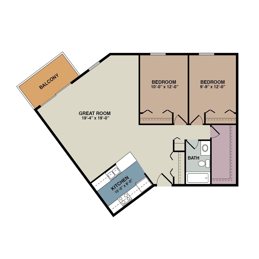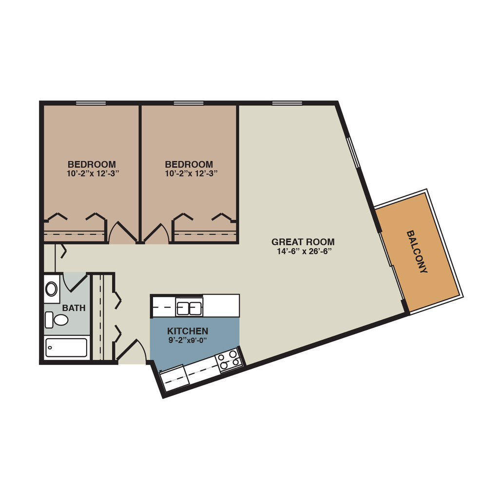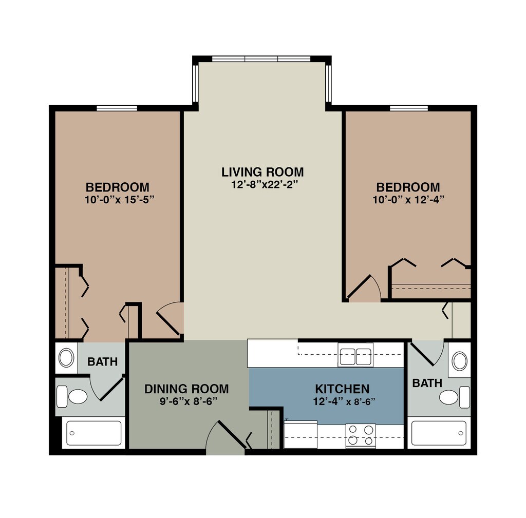 Apartment Model: 2C$1,8502 Bedroom, 1 Bath, 1030-1054 sq ftAvailable Now![]()
