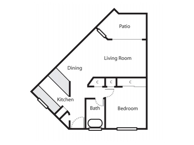 One Bedroom One Bath Pie - Floorplan 1 Apartment Unit: 21-2-198Apartment Model: One Bedroom One Bath PieFrom $1,5841 Bedroom, 1 Bath, 640 sq ftAvailable NowOne Bed One Bath Cottage