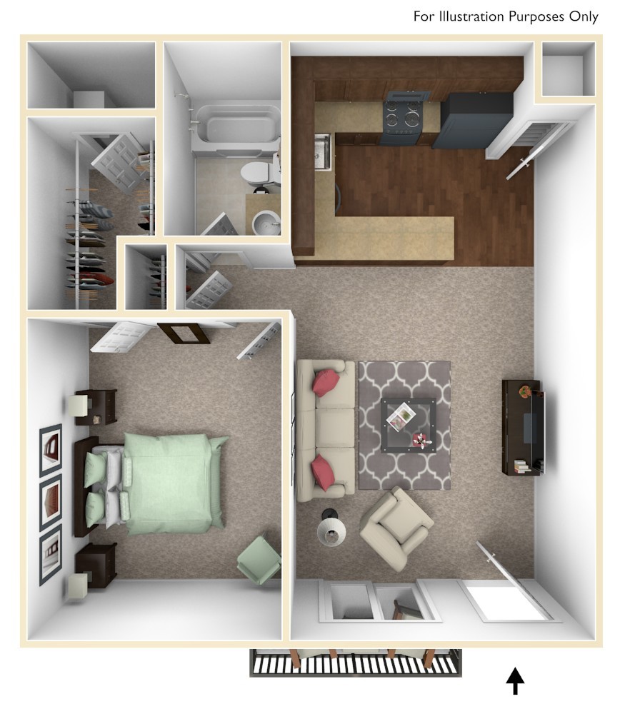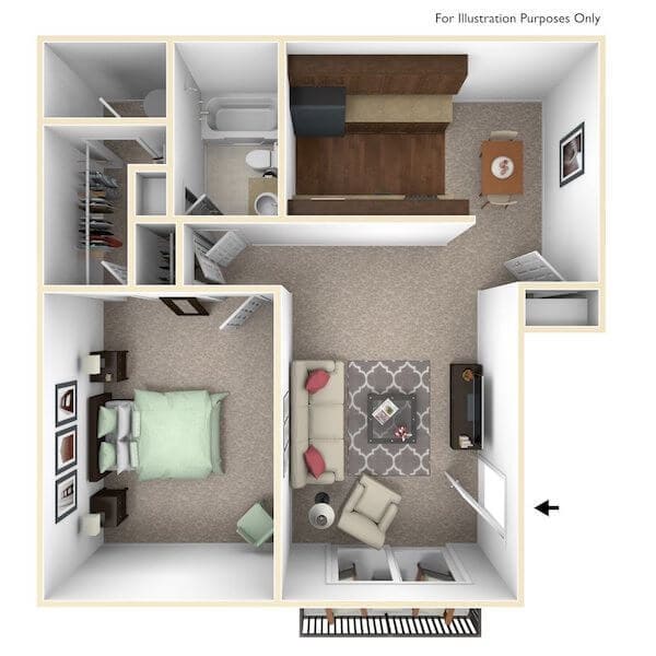 1 Bed, 1 Bath, 620 sq ftModel Gallery