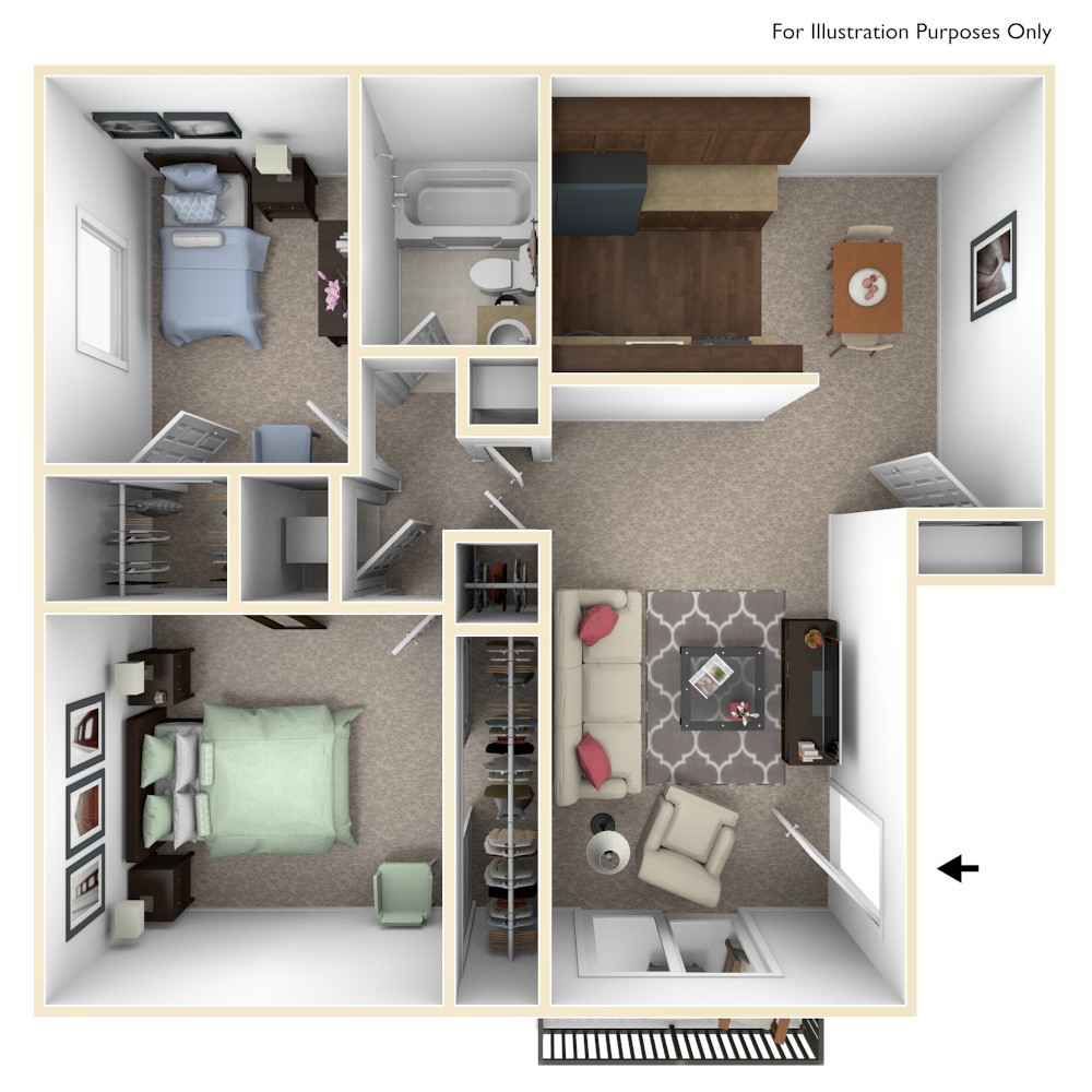 2 Beds, 1 Bath, 742 sq ftAvailable NowModel Gallery