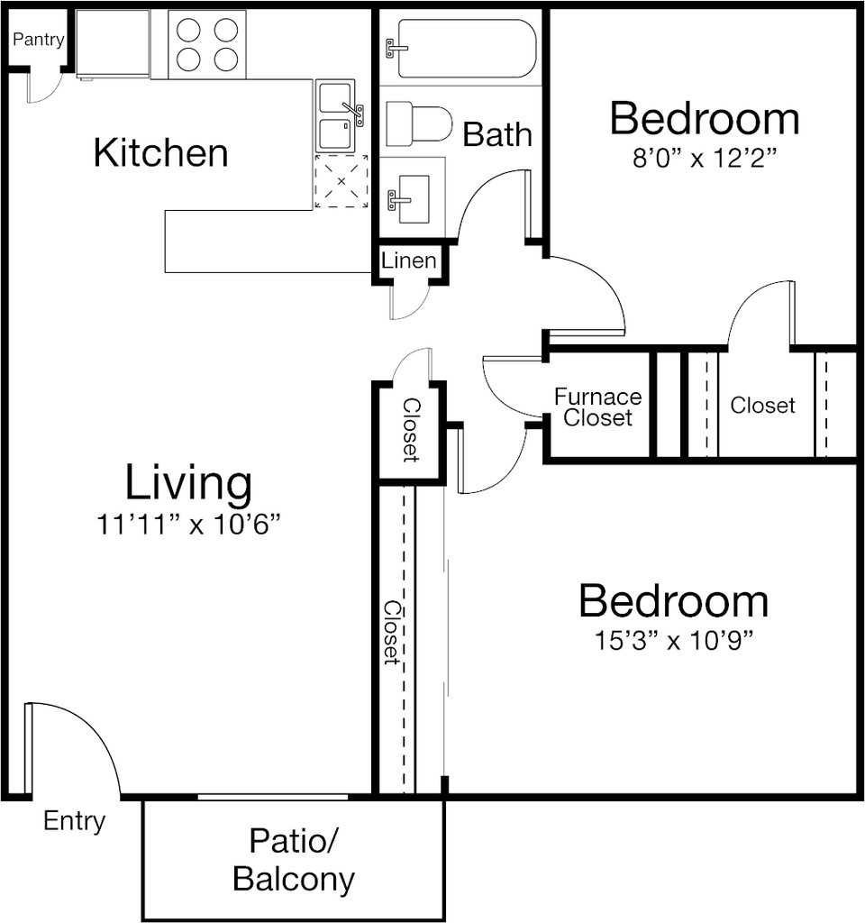 2 Beds, 1.5 Baths, 950 sq ftAvailable NowLargest 2 BedroomThis is the largest 2 Bedroom at this PropertyModel Gallery