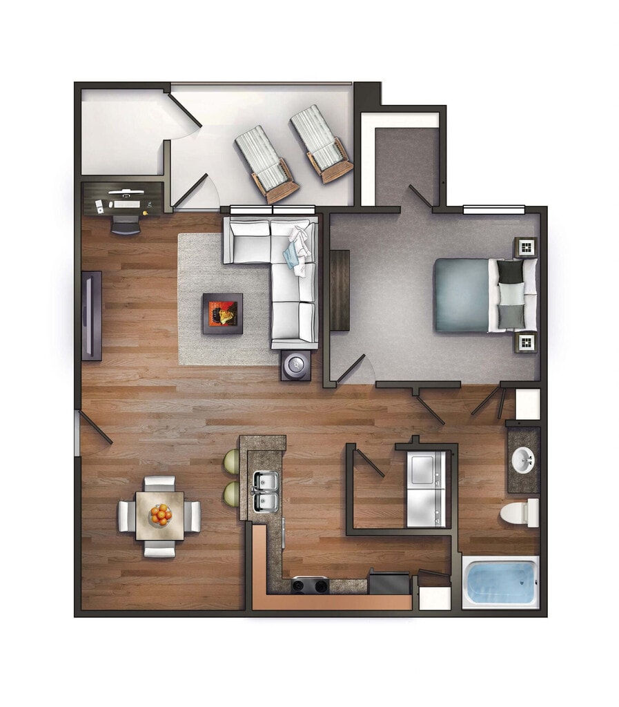 1 Bed, 1 Bath, 828 sq ftAvailable NowModel Gallery