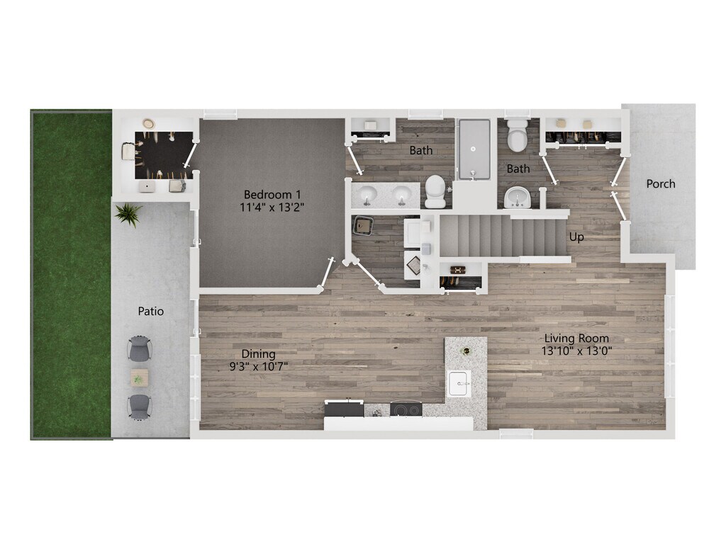 Spartine - Floorplan 1 Floor plans are artist's rendering. All dimensions are approximate. Actual product and specifications may vary in dimension or detail. Not all features are available in every rental home. Prices and availability are subject to change. Base rent is based on monthly frequency. Additional fees may apply, such as but not limited to package delivery, trash, water, amenities, etc. Deposits vary. Please see a representative for details.