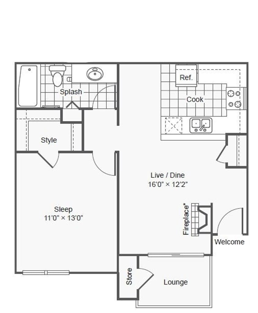 1 Bed, 1 Bath, 671 sq ftAvailable NowModel Gallery