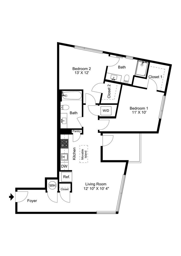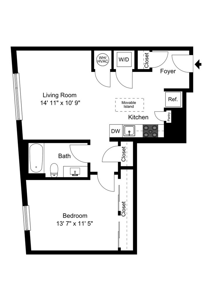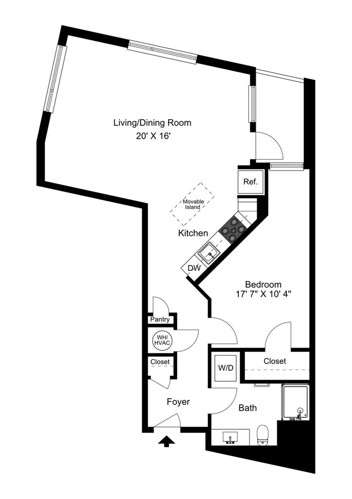 Jr. 1 Bedroom Type B - Floorplan 2 ![]()