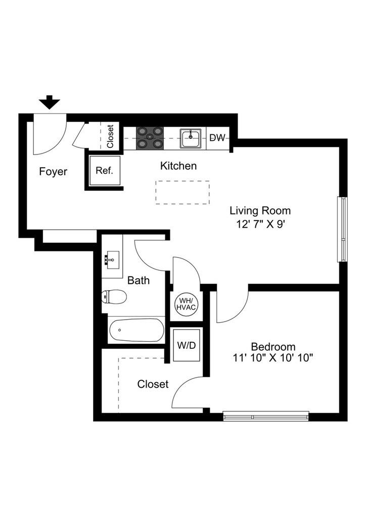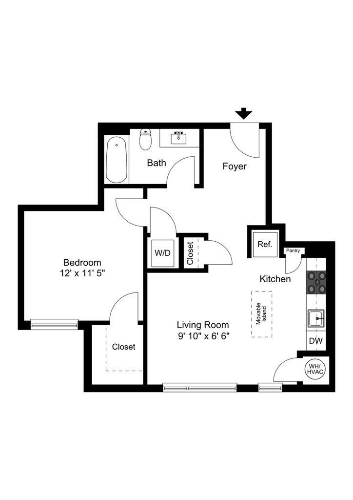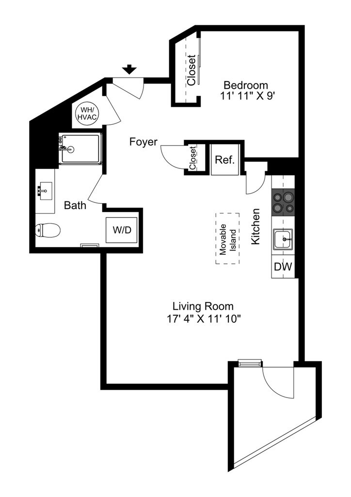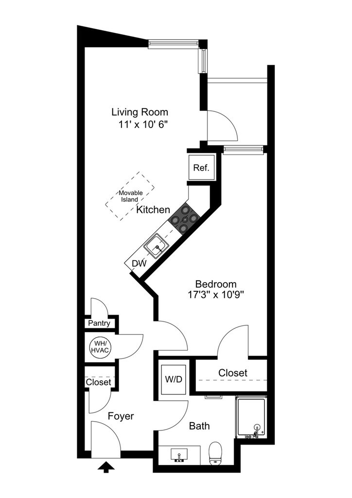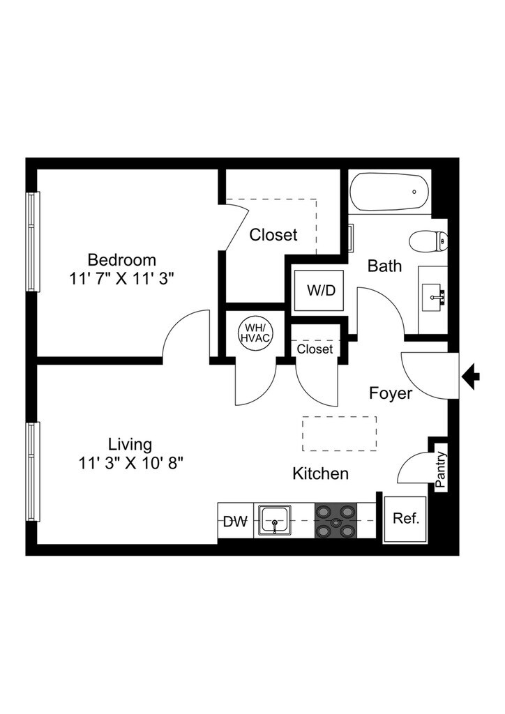 Jr. 1 Bedroom Type A - Floorplan 2 ![]()