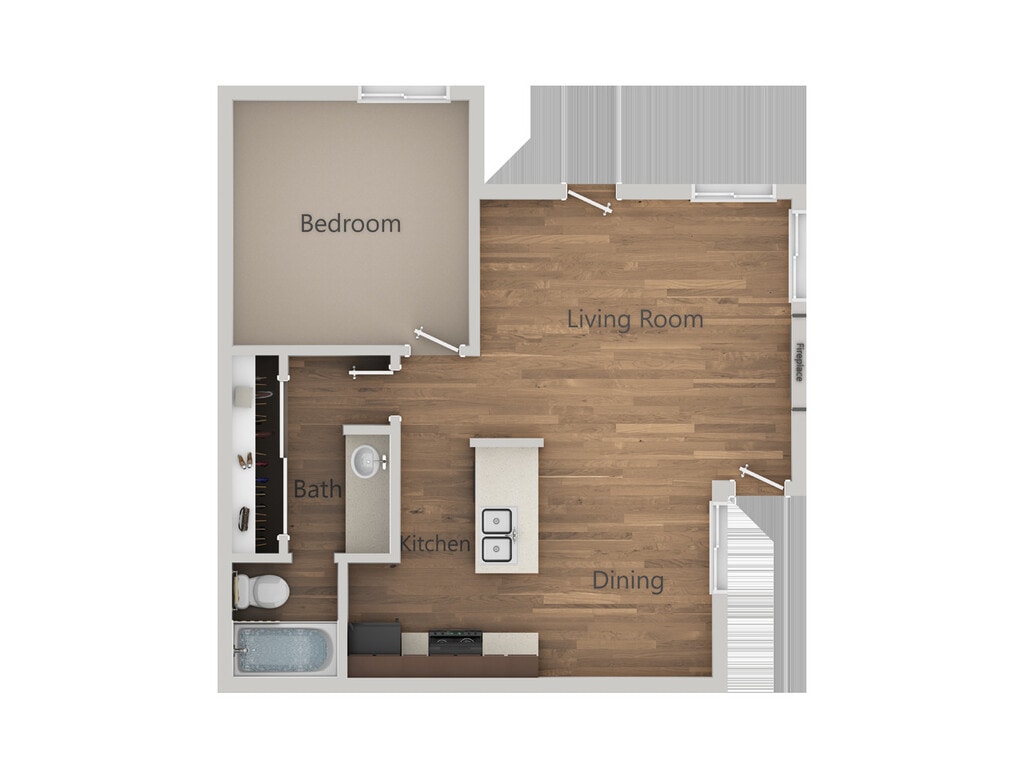 1 Bed, 1 Bath, 645 sq ftAvailable NowModel Gallery