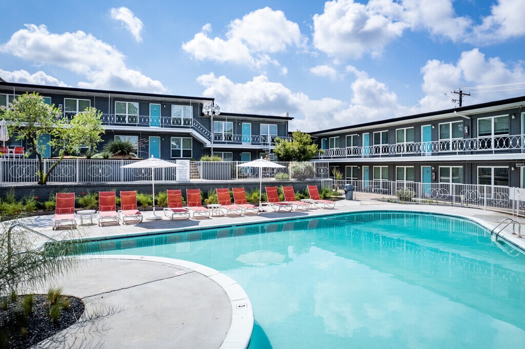 Where urban metro meets 1960’s retro Located in the heart of Austin, there's no place you'd rather call home. You will be enamored by our authentic, mid-century design and spacious living areas in our one-of-a-kind apartments. Truly enjoy the charm of Austin while lounging by our sparkling pool and walking to your favorite eateries and coffee shops. If you're tired of brand new buildings popping up at every corner and you're looking to relive those funky Austin vibes, look no further! Pet Friendly On-Site Recycling Sparkling pool On-site laundry facilities Mosaic tile Marble Tile floors in bathroom Great location – walk to campus and just minutes from downtown Large, open, loft-style floorplans Large closets Modern kitchens and baths Stainless steel appliances