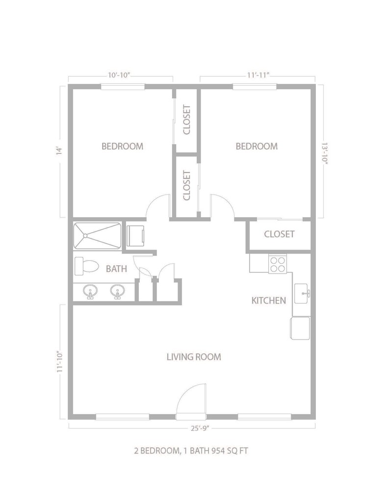 2 Beds, 1 Bath, 954 sq ftAvailable NowModel Gallery