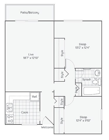 Apartment Model: Two Bedroom$1,6952 Bedroom, 1 Bath, 761 sq ftAvailable December 7, 2025![]()