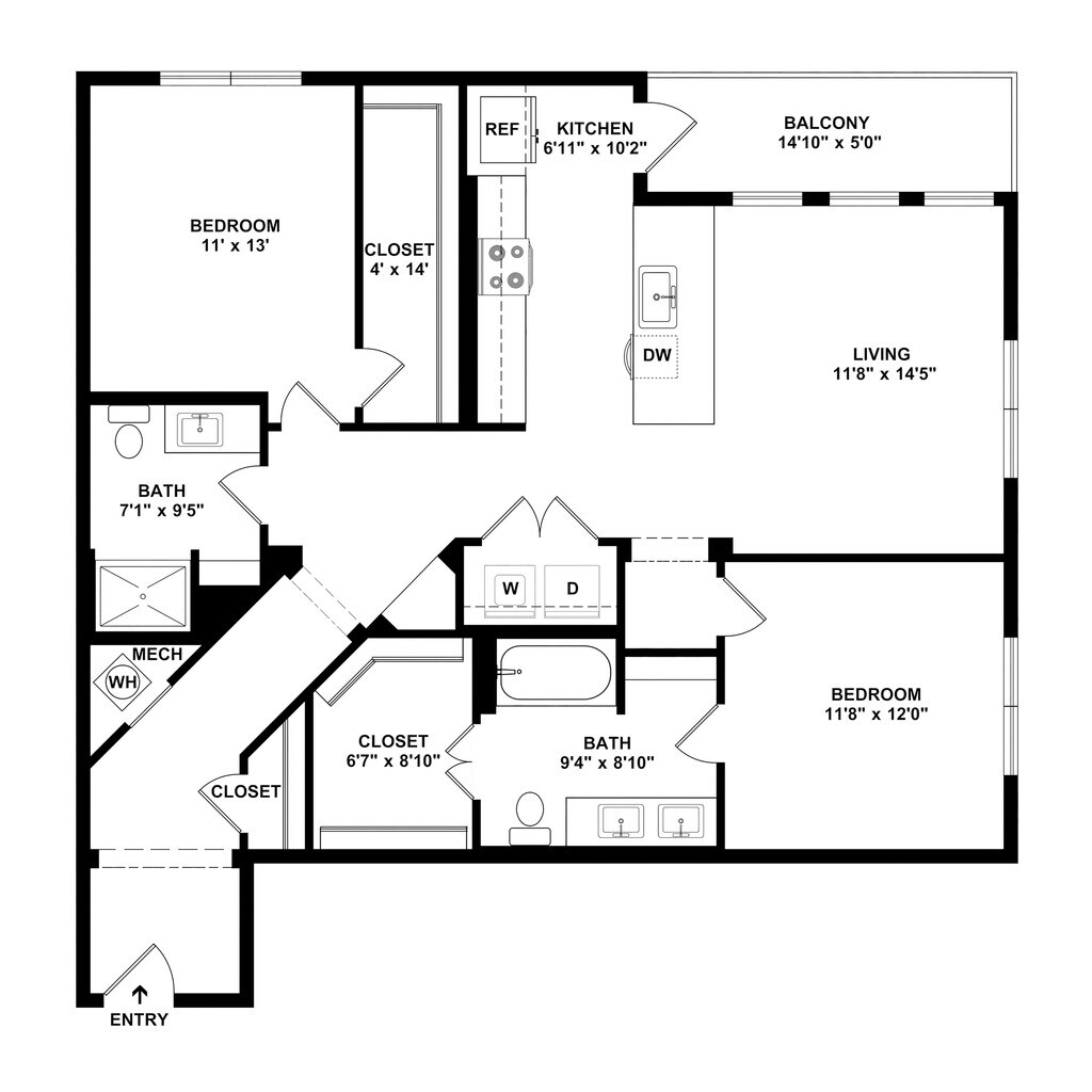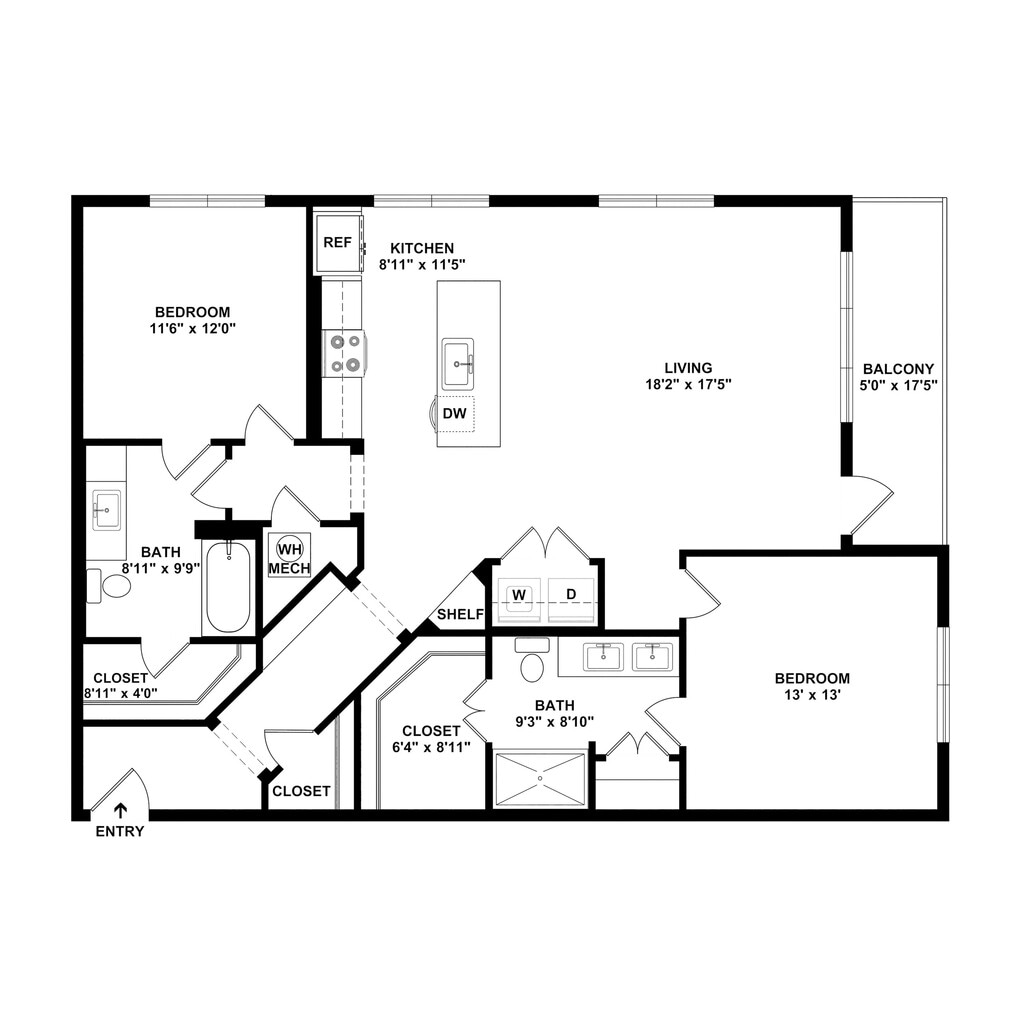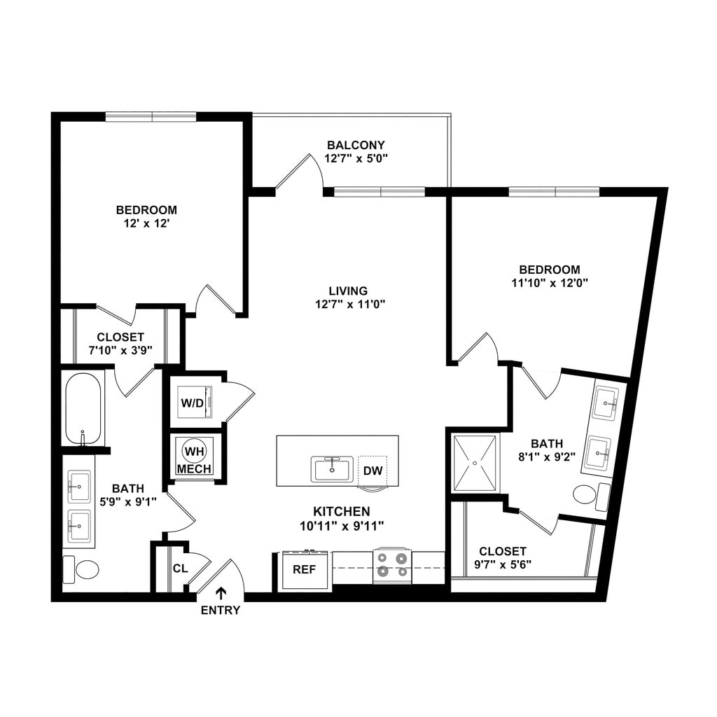 A2-Wabash - Floorplan 2 2 Bedrooms