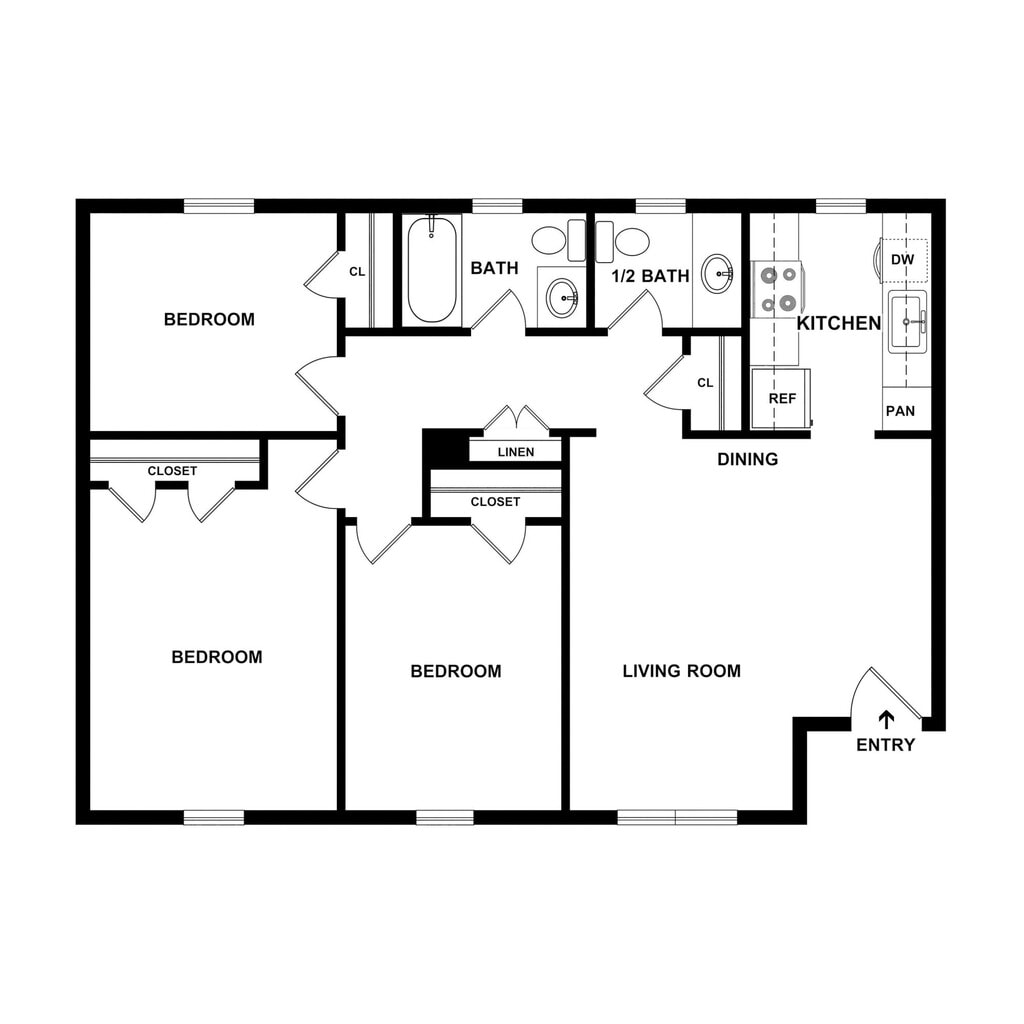 Income-Restricted 3 Bedroom, 1.5 Bath - Floorplan 3 ![]()