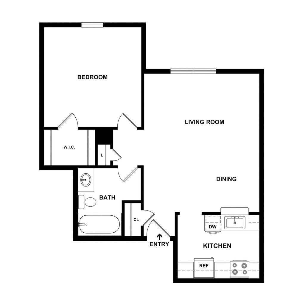 Income-Restricted 1 Bedroom, 1 Bath - Floorplan 2 ![]()