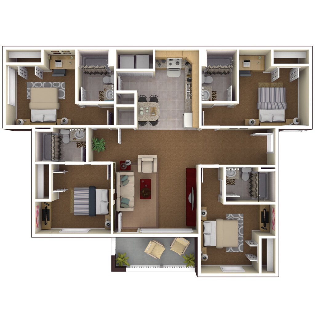 Apartment Model: 4 BedroomFrom $1,6004 Bedroom, 4 Bath, 1444 sq ftAvailable Now![]()