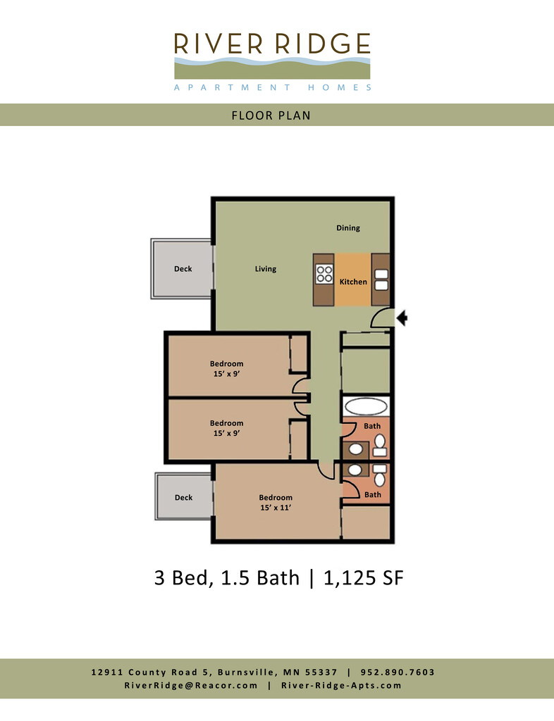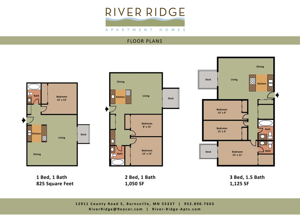 River Ridge Apartments offers 2 to 3 Bedroom apartments starting from $1,450 and having 1,050–1,125 sq ft. Here is the current pricing and availability: