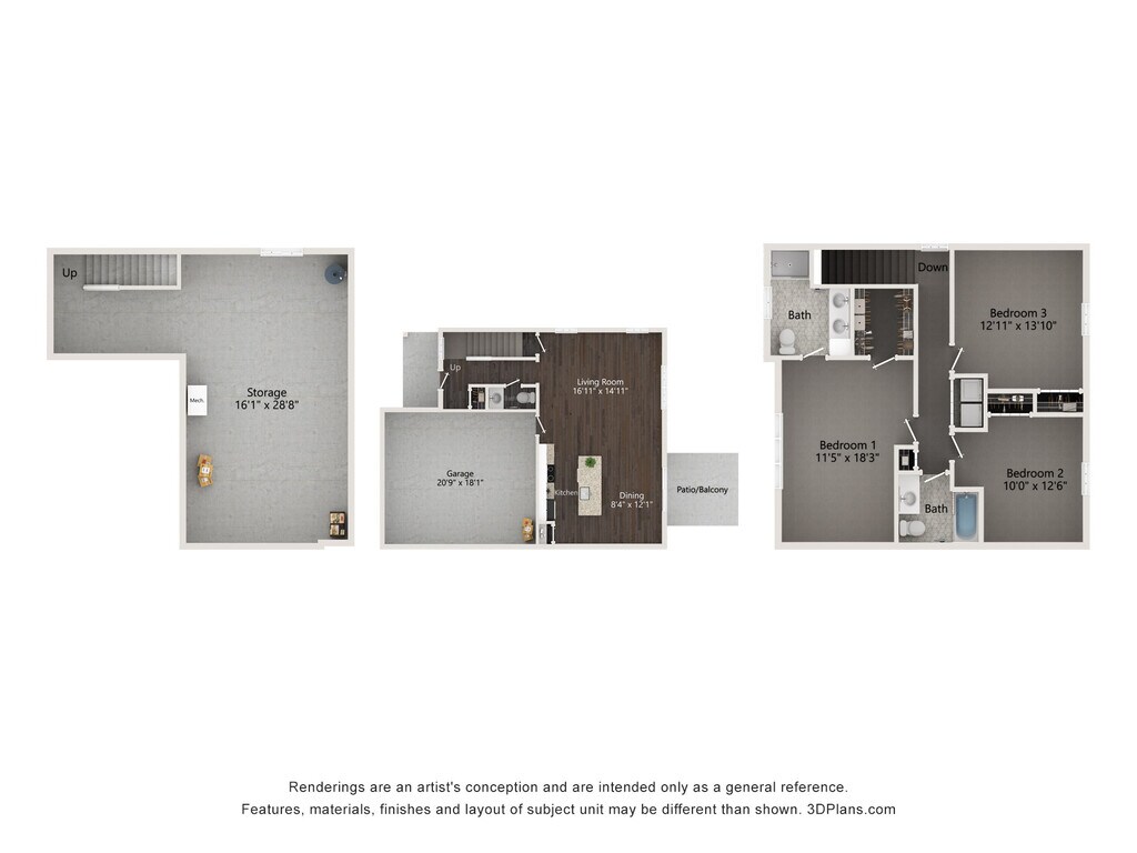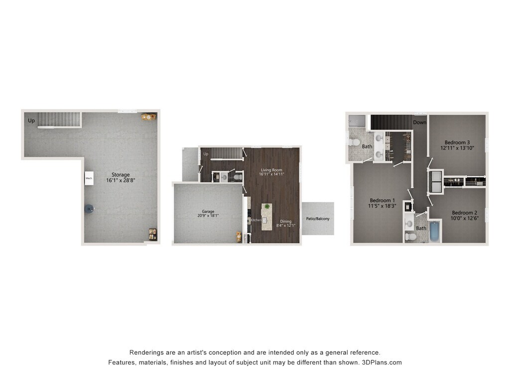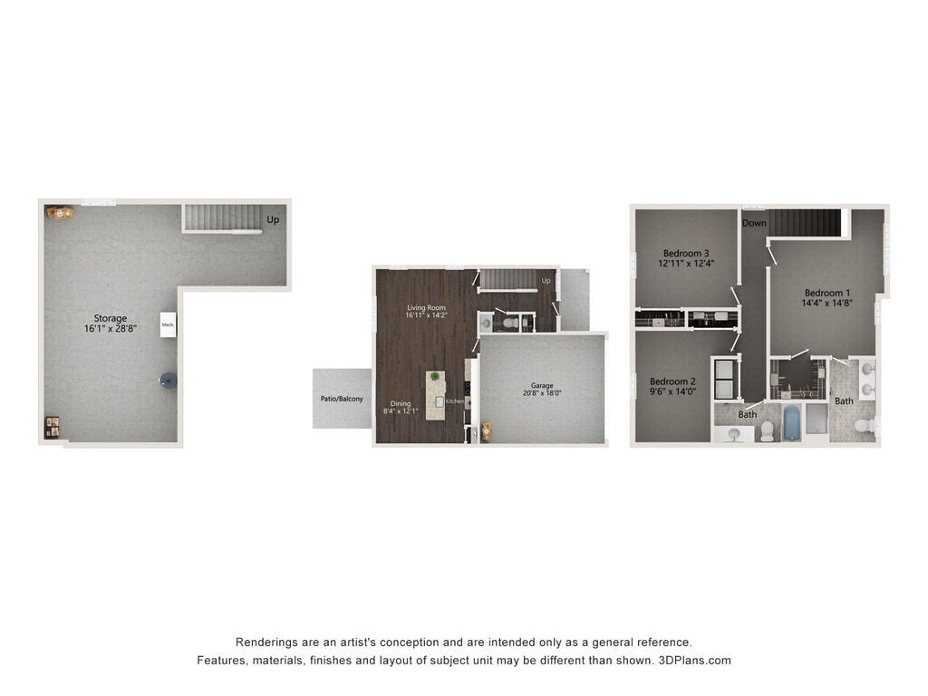 3 Beds, 2.5 Baths, 1628 sq ftModel Gallery