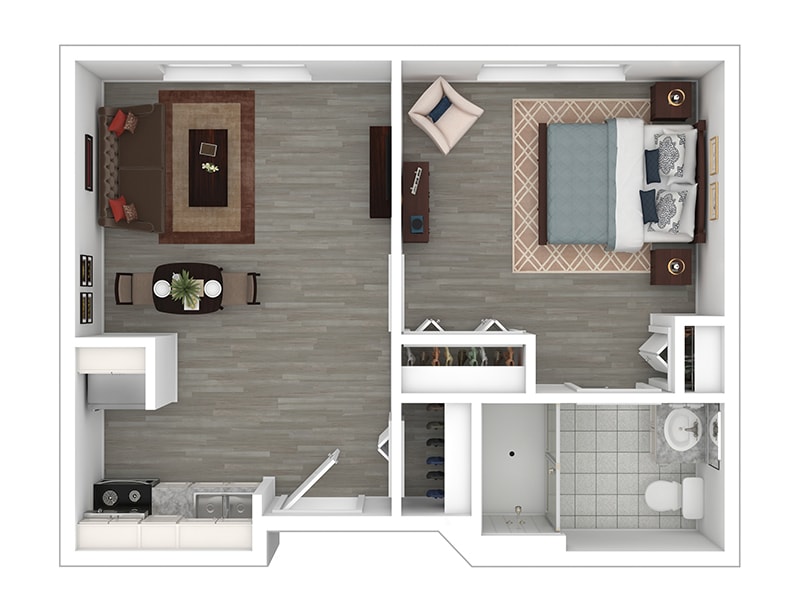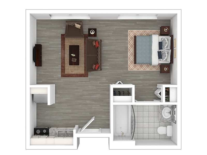Studio to 2 Bedroom Apartments at River Run Senior currently range from $1,288 to $1,751