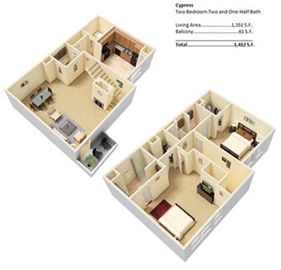 2 Beds, 2.5 Baths, 1352 sq ftAvailable NowCheapest 2 BedroomThis is the cheapest 2 Bedroom at this PropertyModel Gallery