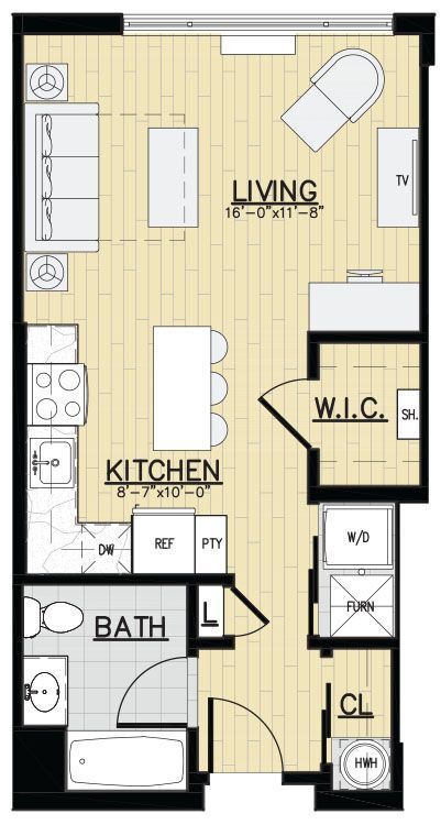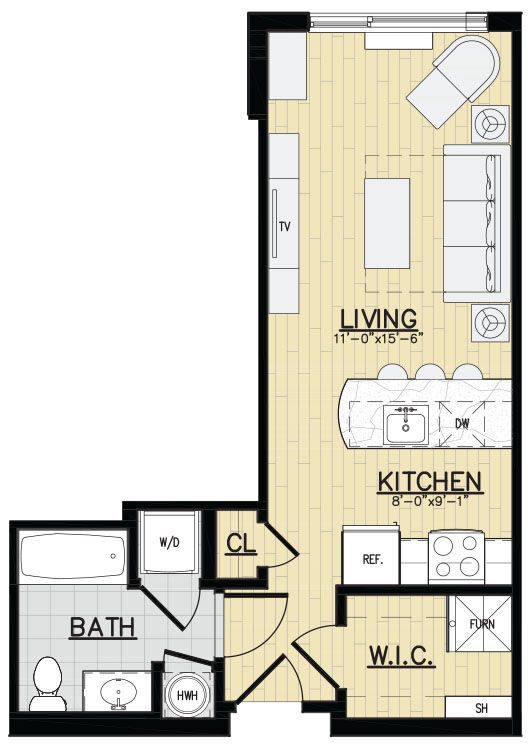 Studio, 1 Bath, 513 sq ftModel Gallery