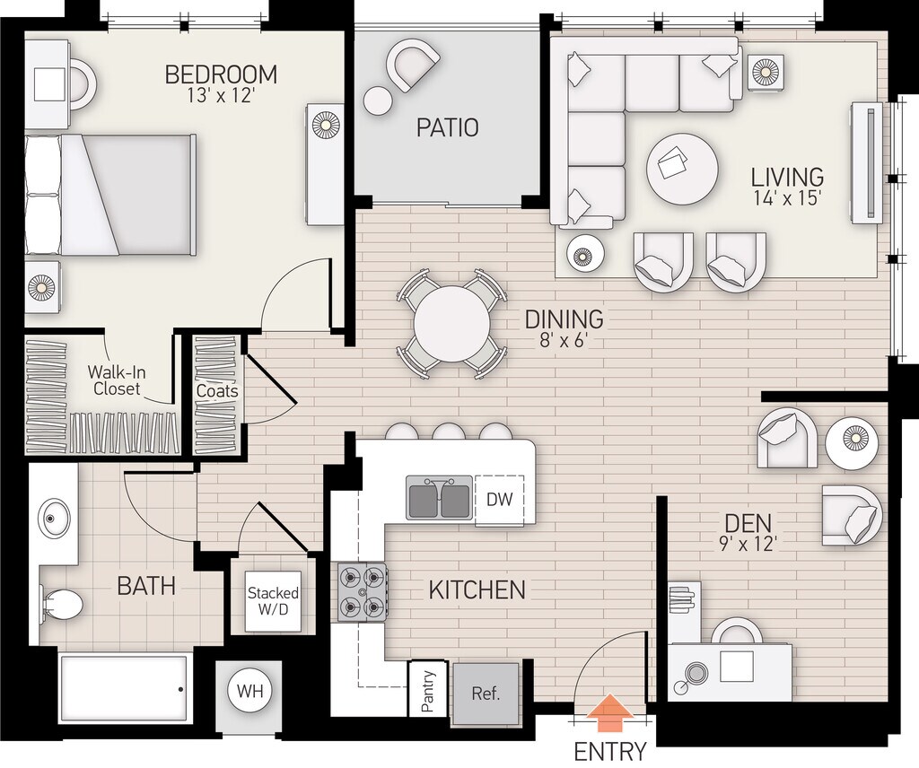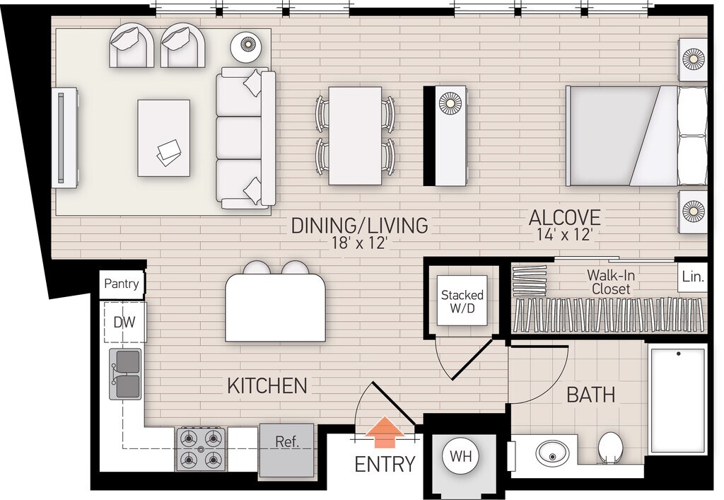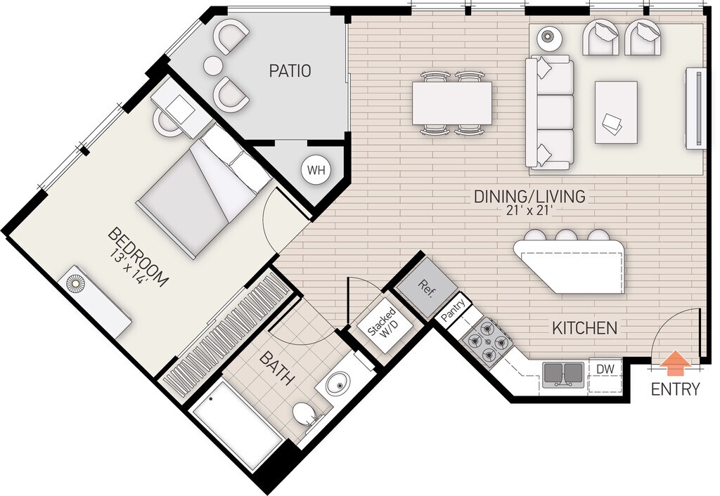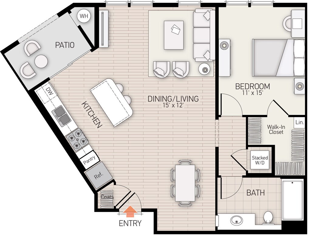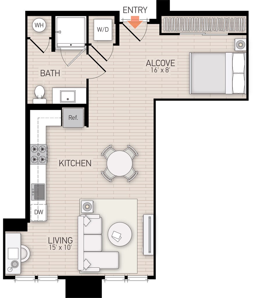 Studio, 1 Bath, 592 sq ftAvailable NowModel Gallery