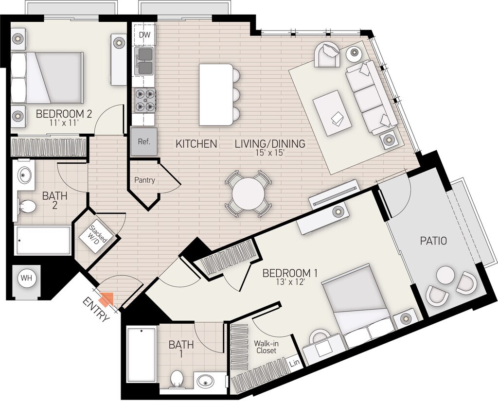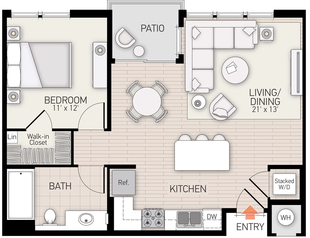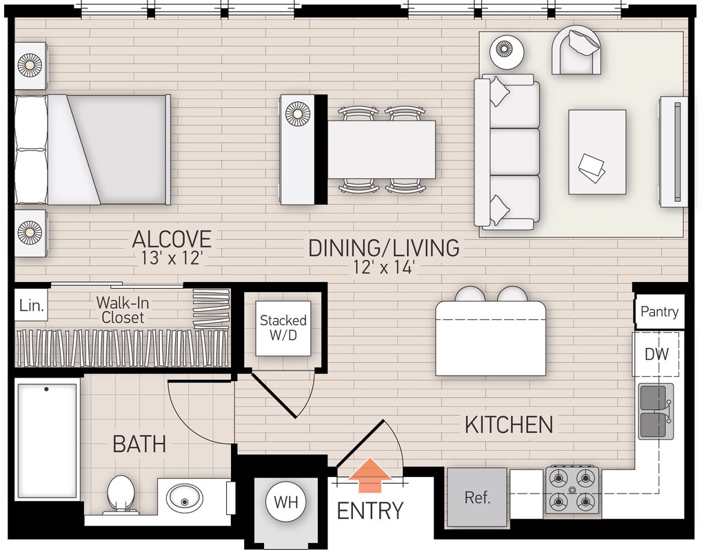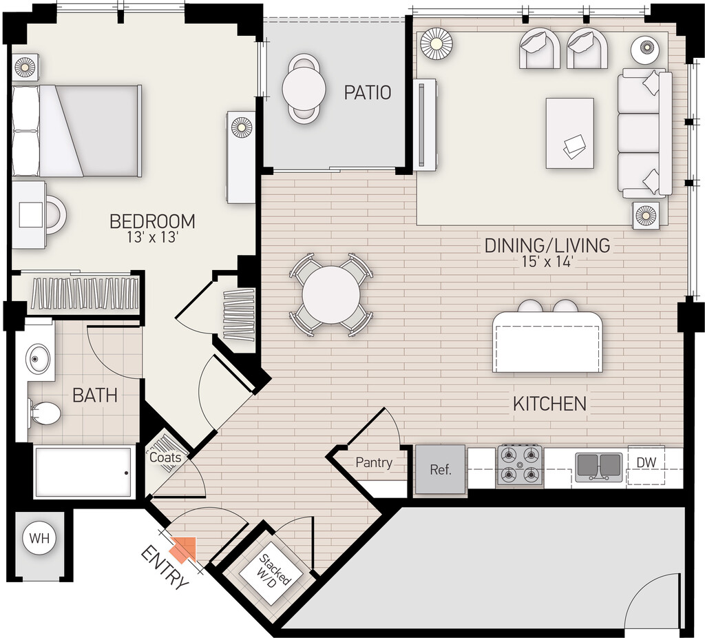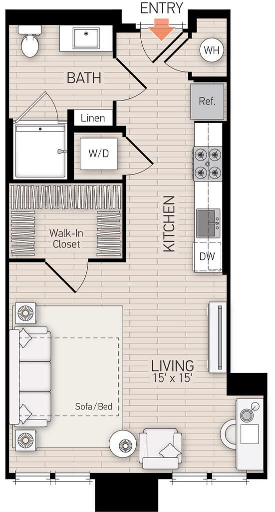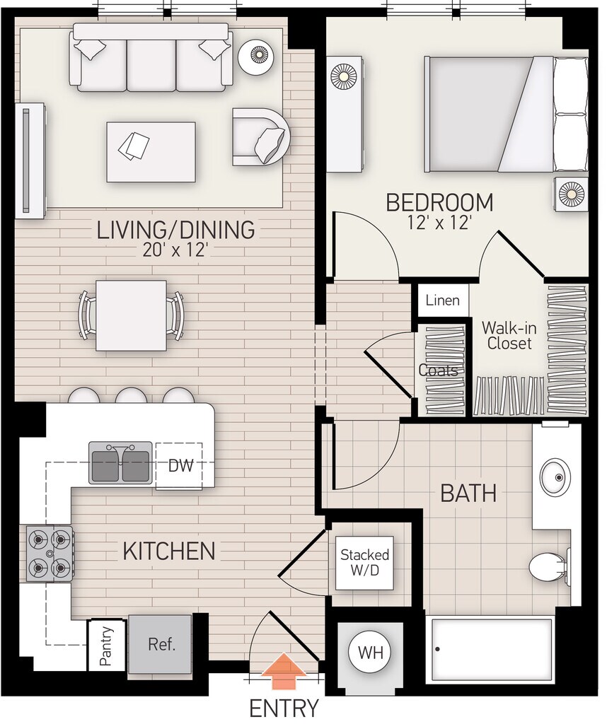 Studio, 1 Bath, 592 sq ftAvailable NowModel Gallery