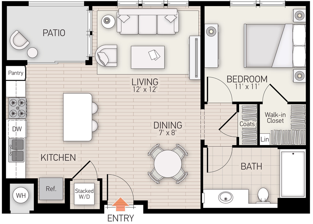 Studio, 1 Bath, 671 sq ftAvailable Nov 18Model Gallery