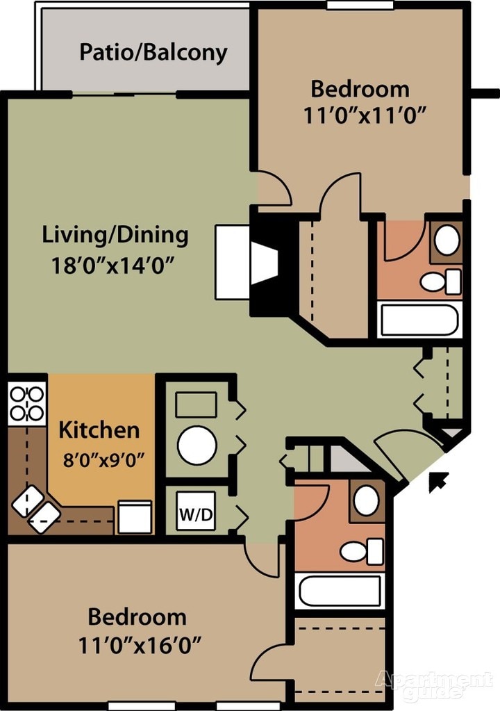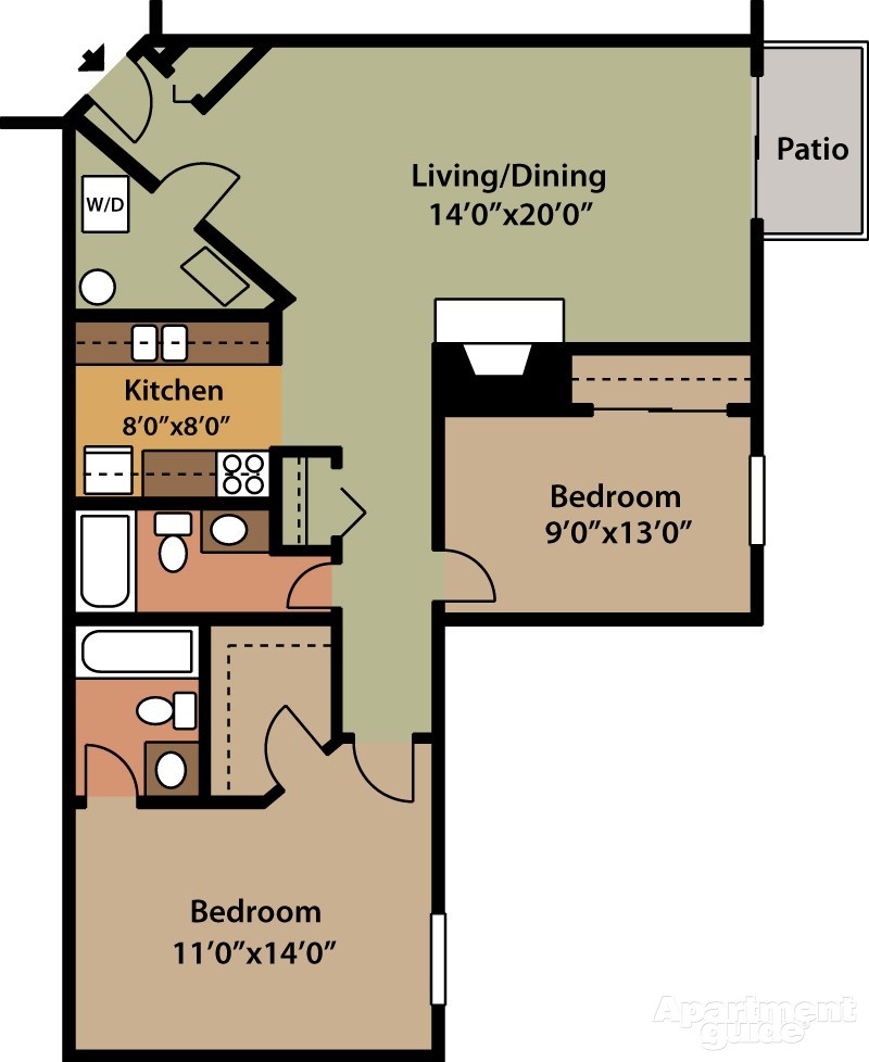 2 Beds, 2 Baths, 1124 sq ftAvailable NowLargest 2 BedroomThis is the largest 2 Bedroom at this PropertyModel Gallery