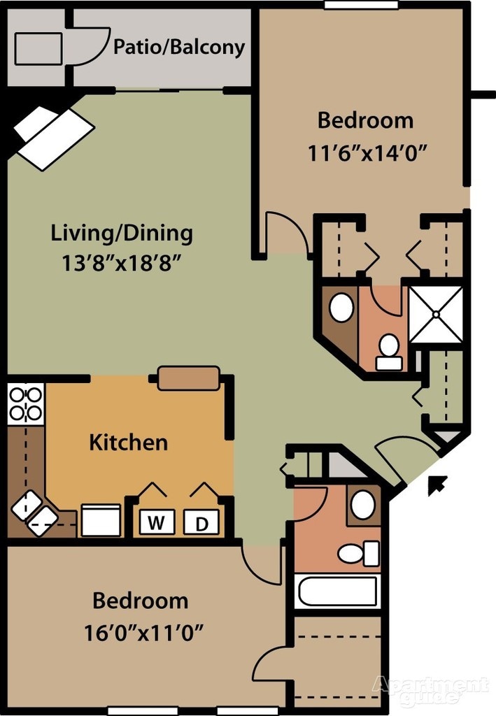 Apartment Model: W22 Bedroom, 2 Bath, 1124 sq ftAvailable Now![]()