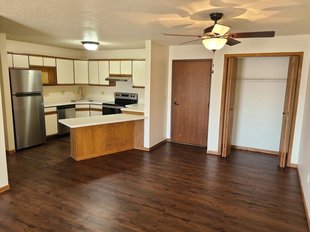 Discover your new apartment home with River's Edge Apartments, located along the scenic Black River on La Crosse’s northside. This remodeled first-floor unit comes fully equipped with a refrigerator, dishwasher, stove, and garbage disposal, and offers the added bonus of a private patio with a partial view of the Black River for your enjoyment. River's Edge Apartments feature secure fob entry and a range of amenities, including a fitness center, community room, coffee and tea bar, outdoor decks with grills overlooking the Black River, a Riverwalk, on-site coinless laundry, private beaches, boat docks, complimentary kayak rentals, and a dog park! Off-street parking is hassle-free, and we also offer garages and storage units for an additional fee. Conveniently located near restaurants, Black River Beach, the La Crosse Amtrak train station, and more, River's Edge has everything you need. Contact us today to secure your new apartment home!