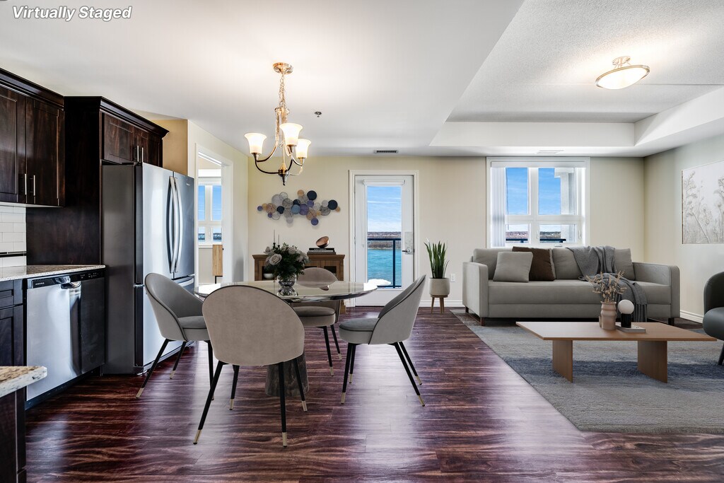 Nestled along the shores of the Detroit River, the most spectacular sunsets can be yours at River’s Edge. Bringing a new level of luxury living to the quaint town of Amherstburg, suites at River’s Edge feature designer finishes, high-end amenities, and river views. All Utilities Included Heat (central air), hydro, and water are all included in your monthly rent. In-Suite Thermostat Control the temperature in your unit with a programmable thermostat. Granite Countertops Granite counters featured throughout each unit in the kitchen and bathroom(s). Washer & Dryer A full-size washer and dryer included in every unit. Electric Vehicle Charging An onsite EV charging station will be available for residents. Golf Simulator Perfect your swing in the golf simulator room! Additional amenities: pet friendly, central A/C, blinds included, upgraded appliances, private balconies, walk-in closets, barrier free units, open concept floor plans, vinyl flooring, secured entry access, walk in showers
