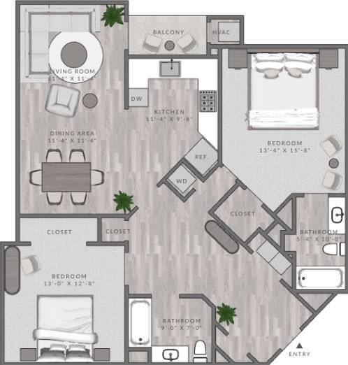 Apartment Model: B5-2x2 - East$2,8652 Bedroom, 2 Bath, 1183 sq ftAvailable December 11, 2025![]()